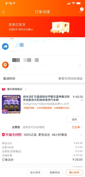 天猫嘉利美旗舰店29.8元,可领20元优惠券,实付9.8元到手,1000g此价,能够治理10-15㎡,还有其他的型号可选,会附赠甲醛检测盒。