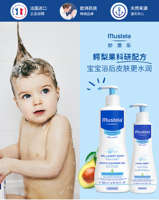 天猫妙思乐旗舰店99元,可领40元优惠券,实付59元到手,500ml。Mustela妙思乐是来自法国的母婴用品品牌。这款妙思乐二合一洗发沐浴露,采用天然萃取鳄梨果精华,温和清洁,保护皮肤屏障,预防干燥,舒爽自然,不含防腐剂香料等成分。无泪配方不会对宝宝造成刺激,洗发、沐浴功效二合一,使用更省心。 适合于新生儿及婴幼儿。
