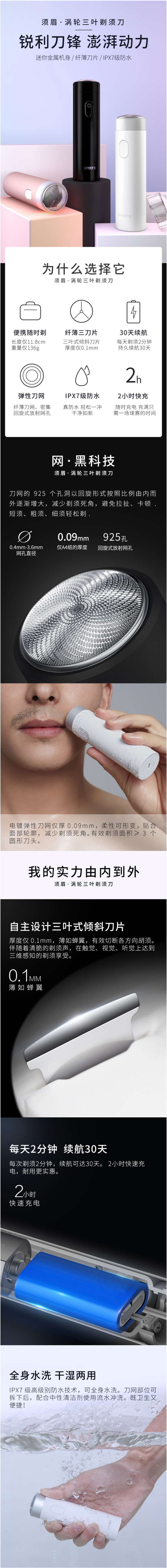 天猫须眉个人护理旗舰店149元,可领20元优惠券,实付129元到手,持平历史底价,黑白两款可选。这款剃须刀,外型有点像大号的口红、或者小号的手电筒,简洁质感,符合小米一贯的风格,体积小巧,适合出差旅行携带。特色是刀网的涡轮结构,925个孔洞以回旋形式逐渐增大,剃须没有死角,同时避免拉扯、卡顿现象。