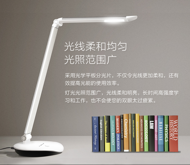 灯珠外的平板分光片,可以令光线更加柔和,还能有效提高光能的使用效率;四档灯光模式,灯罩能180°自由调节,灯头灯身和底座2处也可转折,能满足不同角度的使用需求,转折处为可调式阻尼,可调灯臂松紧程度,使得整体更加稳定。
