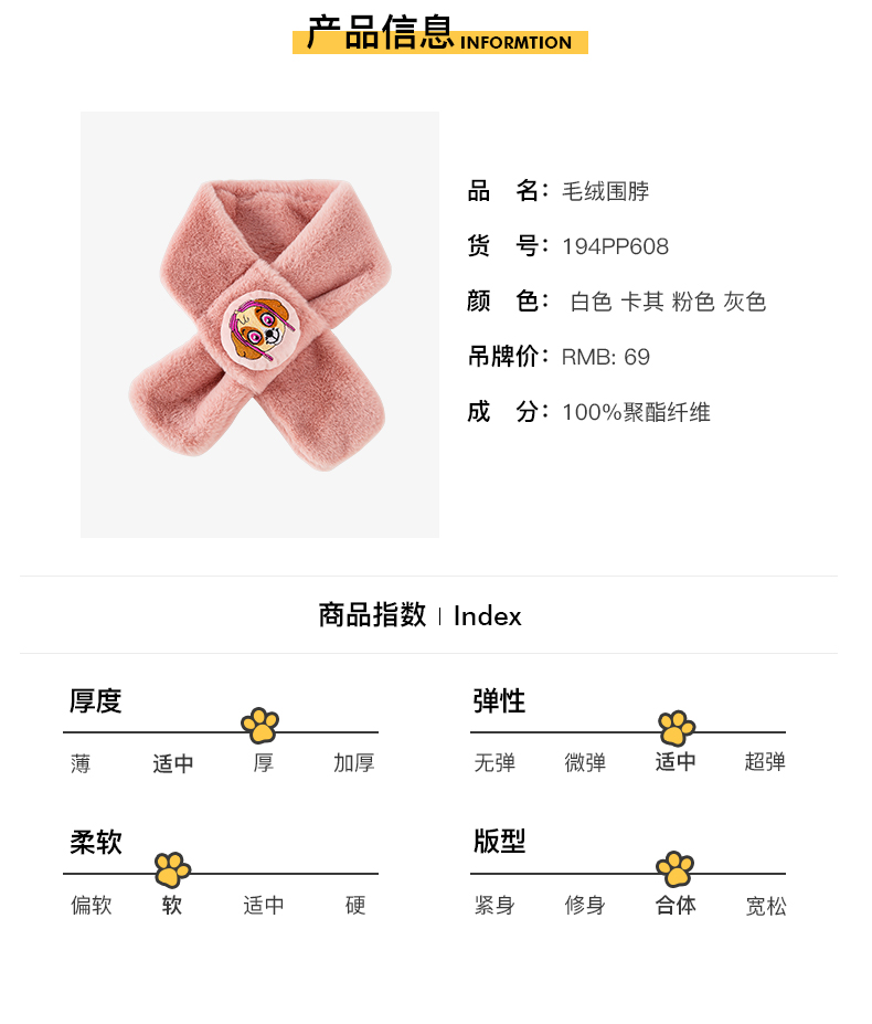 天猫汪汪队立大功童装旗舰店,20-22日 天猫母婴亲子日,¥29元 亲子日价,-10元优惠券,=19元 到手价,孩子都爱的汪汪队,细腻柔软毛绒围巾,穿插设计穿戴方便,有精致的徽章,萌趣可爱,保暖舒适,出门带上防风保暖。