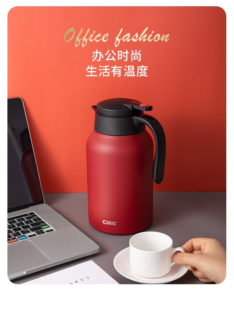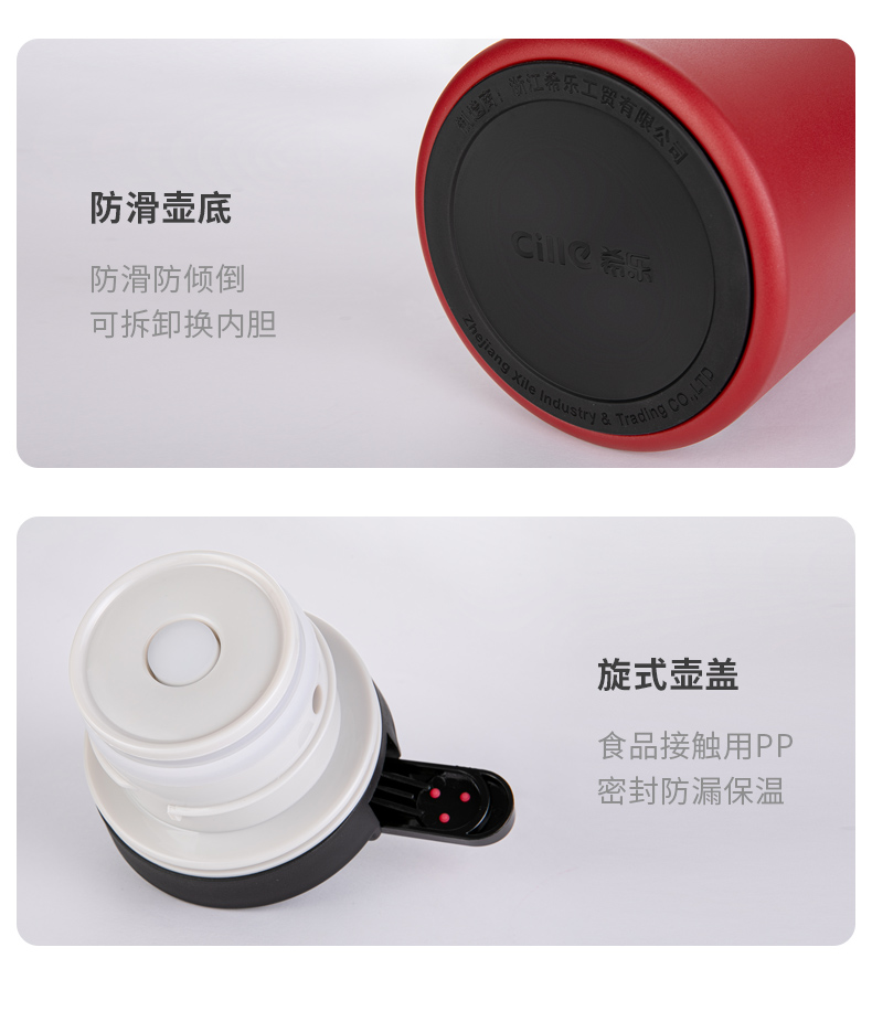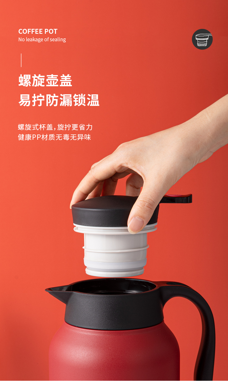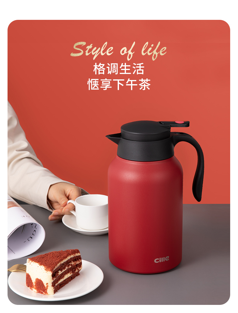 这款希乐 304不锈钢保温壶,食品级304不锈钢内胆,抗氧化、耐腐蚀、无异味。壶身是6层组合,外层喷漆、304不锈钢壶身、微波镀铜层、真空隔热保温层、304不锈钢内胆、电解研磨层,形成空间热层,锁住温度。