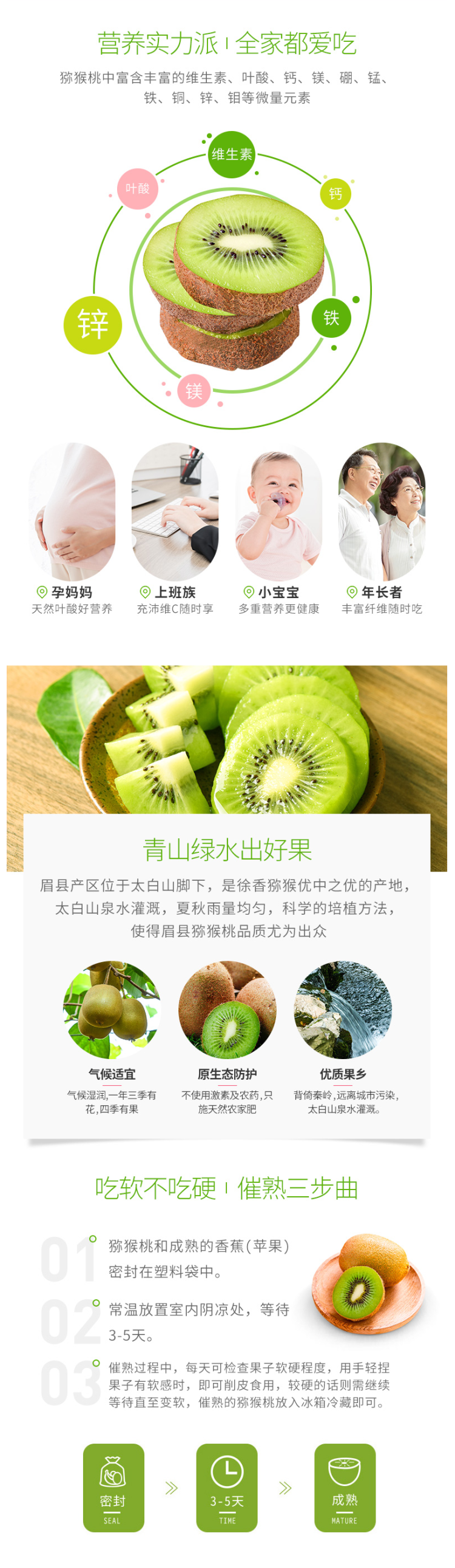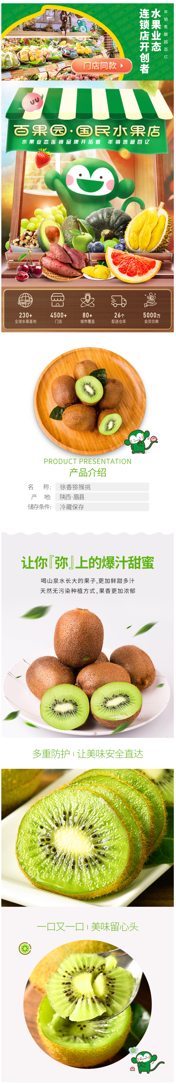 这款百果园 徐香猕猴桃,产地是陕西眉县,新鲜直采,现摘现发,承诺坏果包赔。果子皮薄肉厚,果肉翠绿,饱满多汁、酸甜怡人,口感绵软,香甜细腻。