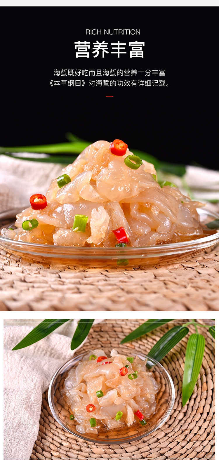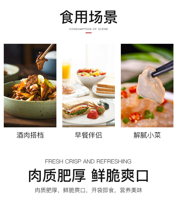 今吾味即食海蜇头、天然野生海蜇丝,网红美食,舌尖上的美味,脆嫩爽口,肉质肥肉,特制配料包,开袋即食,自然健康,营养更美味,休闲、聚餐、喝酒必备