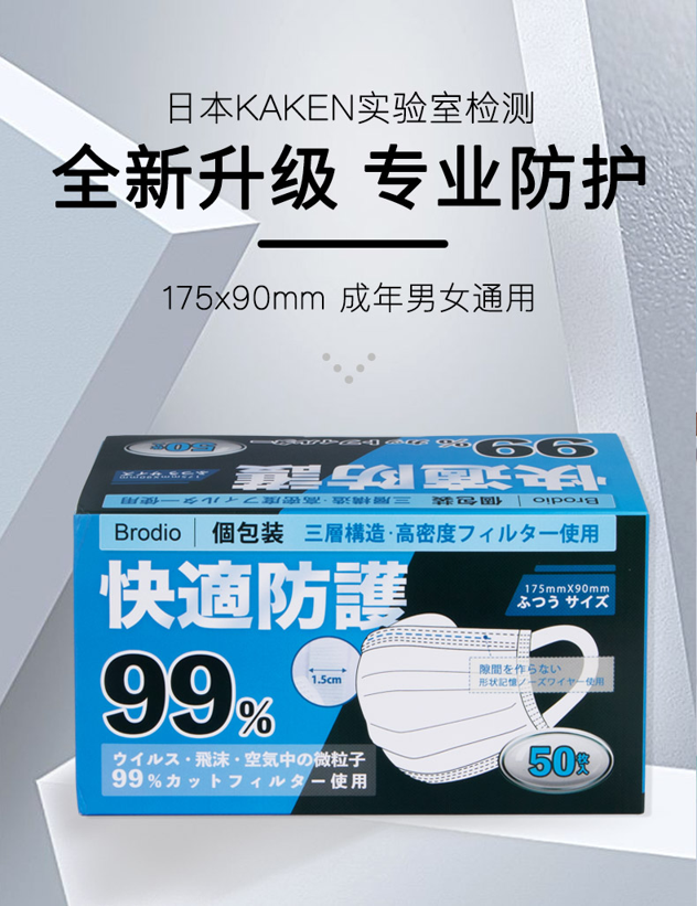 天猫brodio旗舰店49.8元,可领20元优惠券,实付29.8元到手。50只款这个价格。日本一次性防护口罩,防花粉防尘透气不勒耳,,三层防护,有效抑制有害细菌,多层过滤保护,高滤低阻,畅快呼吸,防水不惧飞沫,赶快给家人囤起来。