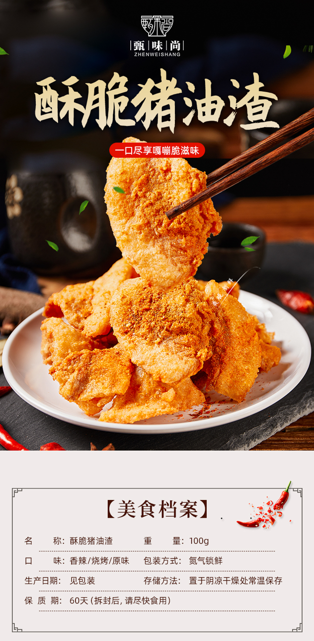 天猫甄味尚旗舰店25.8元,可领3元优惠券,第二件9.9元,拍两件实付32.7元到手2袋,是正价38元的6折;温州猪油渣 酥脆爽口。领券链接点此