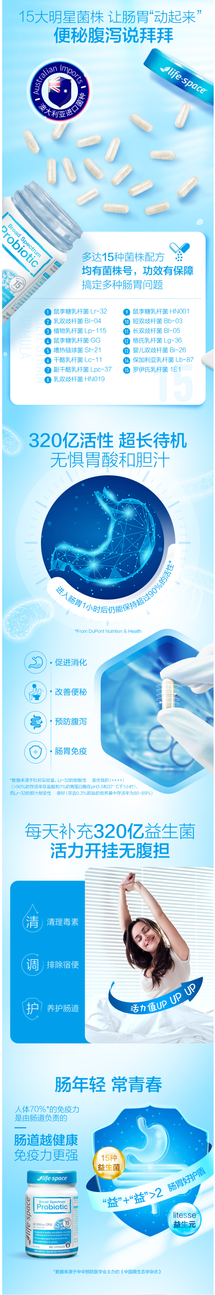 在益生菌保健品之中,是含有数十亿活性益生菌的,可以极为快速有效的补充到人体。而在世界各国益生菌保健品中,Life Space是很受大家欢迎的领军品牌,它是澳大利亚品牌,大家都知道,澳大利亚在审核保健品这方面堪称全球最严格的国家,所以它的产品吃起来可以很放心。