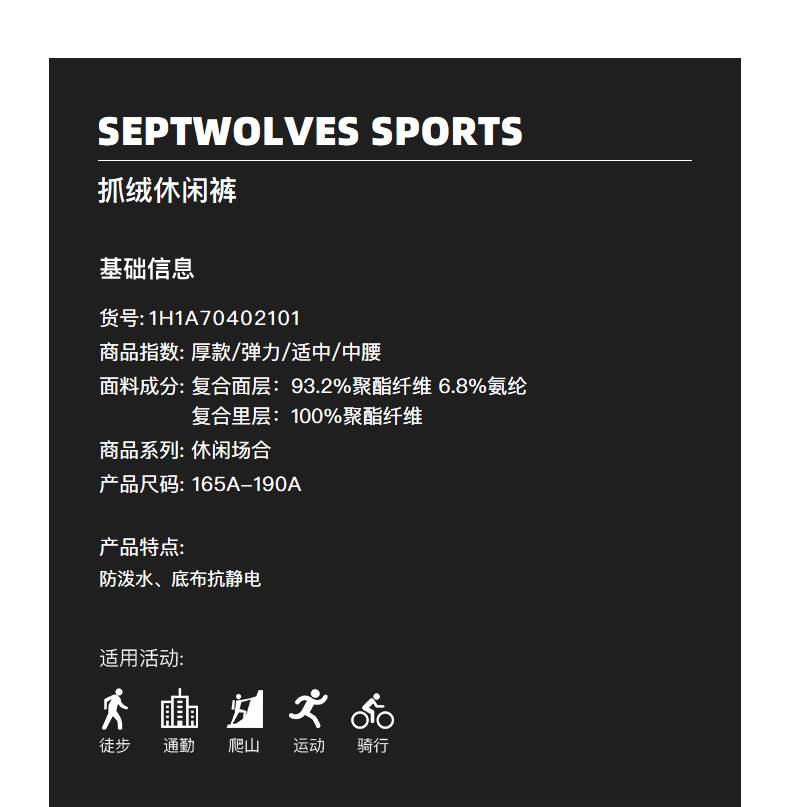 这款七匹狼男加绒软壳休闲裤,是2020年秋季新款,采用单层双面的复合软壳面料,摸起来的手感柔软舒适不是很硬,集防泼水、防风、保暖性于一体。