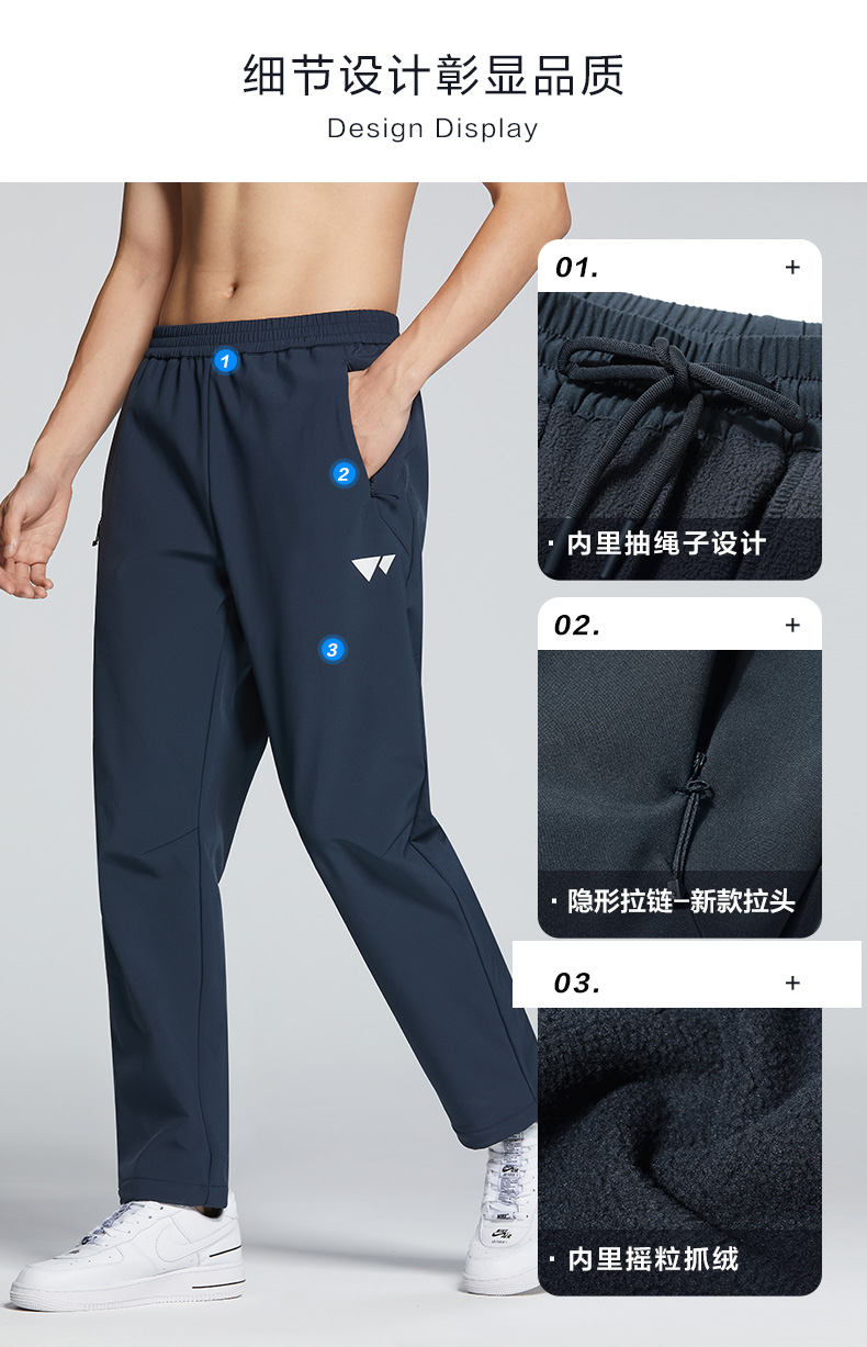 在款式上,宽松直筒裤型,罗纹裤腰和抽绳的组合,穿脱方便,两侧是隐形拉链,好看实用。