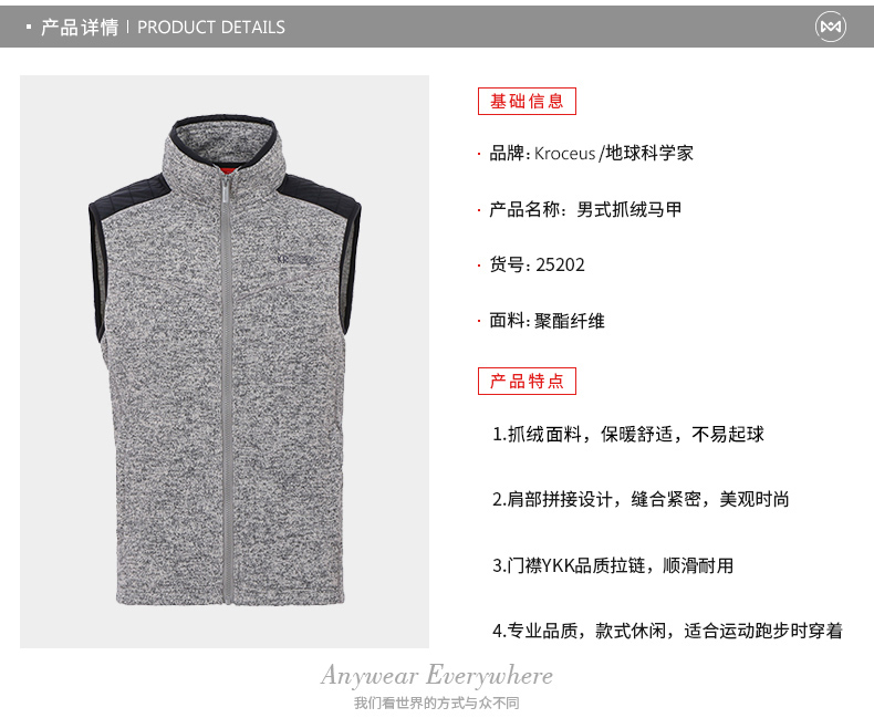 地球科学家“Kroceus”以前叫“科诺修斯”,2014年改名为地球科学家,是嘉麟杰运动的自有品牌,也是为数不多使用高端面料的国内户外品牌,价格只是国际大牌的三分之一。因为是做面料起家,地球科学家全线产品的面料都不错,抓绒、羊毛内衣、羽绒服更是优势产品线。