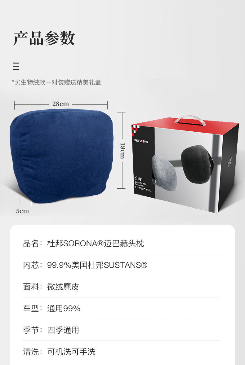 天猫车早茶汽车用品专营店68元,可领30元优惠券,实付38元到手,单只装此价。这款是仿奔驰迈巴赫的头枕,表面采用仿麂皮绒材质,质地丝滑棉柔,不脱毛不褪色,内里填充杜邦的索罗那纤维,天然的三维螺旋结构,拥有出色的回弹性和保型性,持久不塌陷。