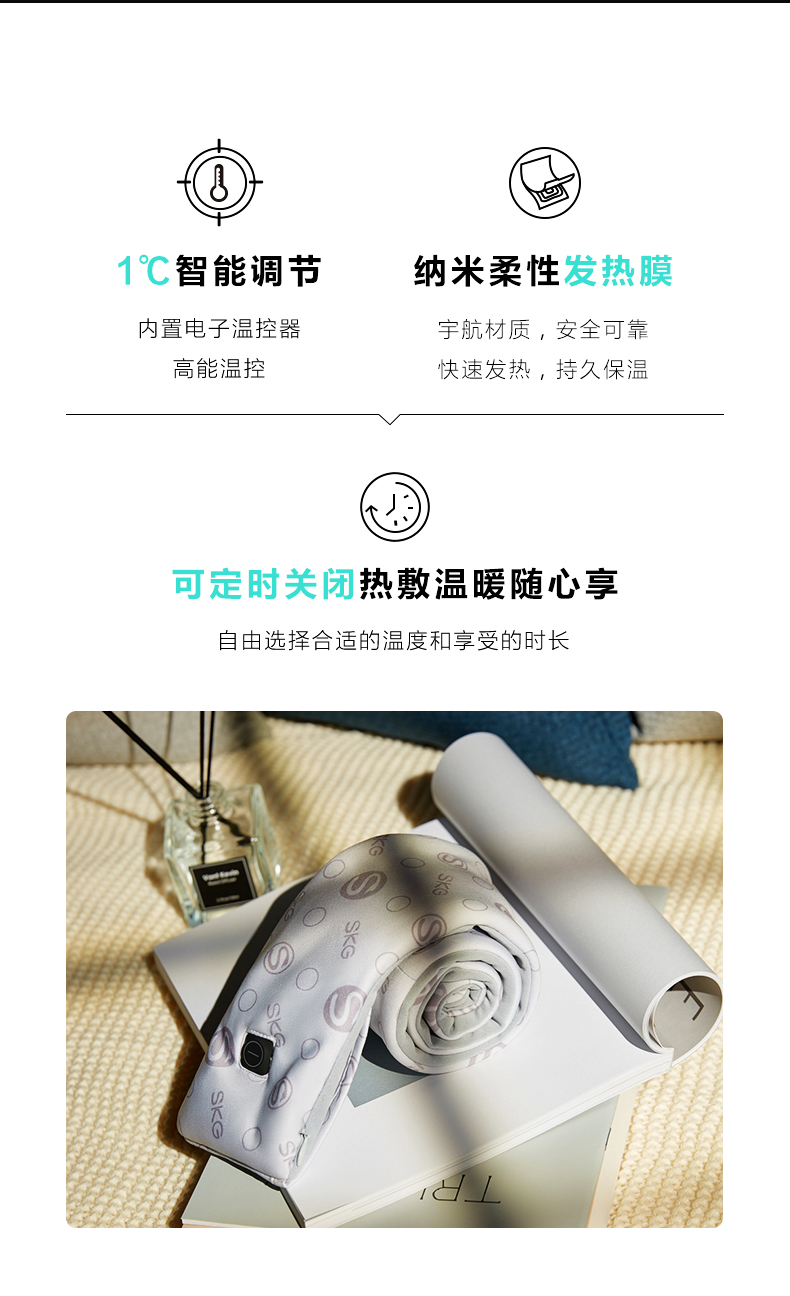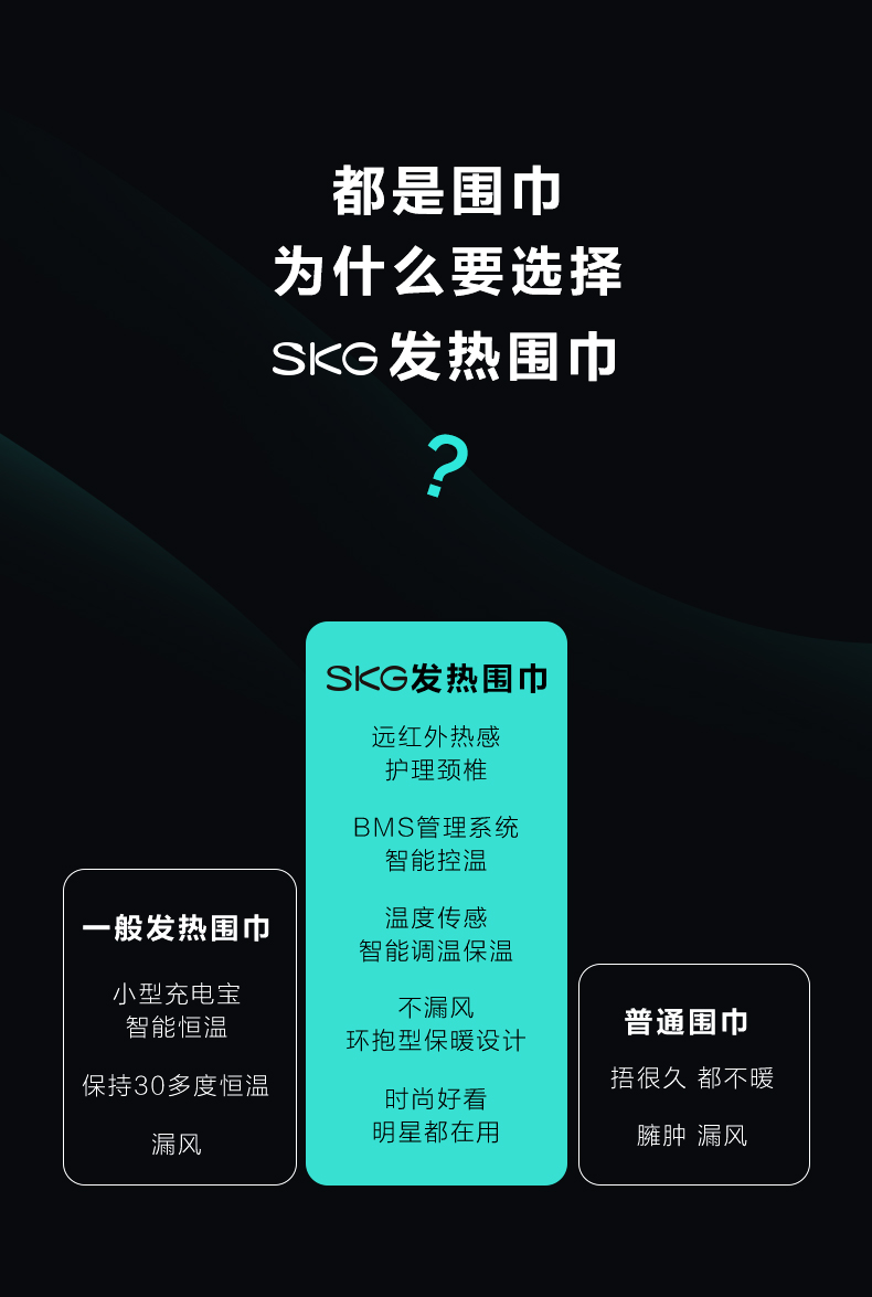 这款SKG保暖电热围巾,除了保暖,还拥有颈椎按摩功能,是围巾+按摩仪的结合体,保暖、保健二合一。