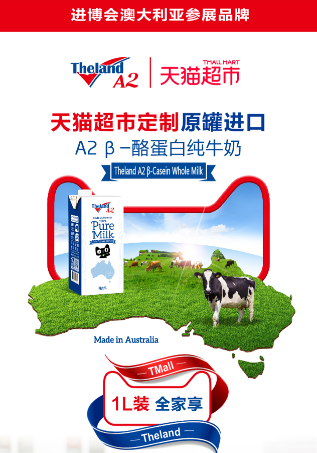天猫超市定制款,澳洲原装进口,A2 β-酪蛋白甄稀奶源,100%生牛乳生产过程中不添加防腐剂、香精、色素、防腐剂等,每100ml牛奶中的蛋白质含量3.3g。