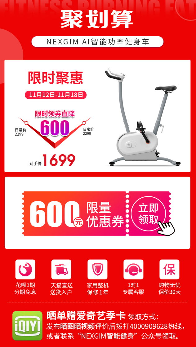 发布晒图评价后,拨打4000909628热线或者联系“NEXGIM智能健身”公众号领取。