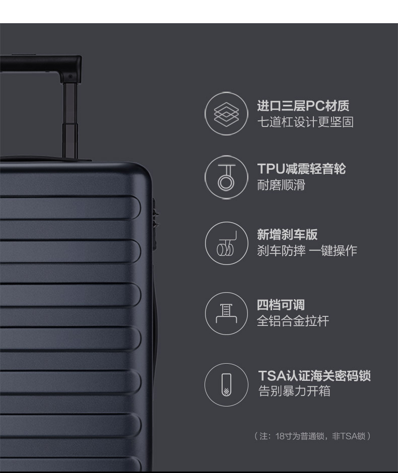 天猫90分旗舰店299元,可领80元优惠券,实付219元到手,18寸此价。这款拉杆箱定位超轻量级,采用轻量pc+abs中框,轻巧坚固,给箱体提供强有力的支撑,回弹性能好,受冲击后仍然完好,箱面三层pc材质,强韧耐剐蹭。