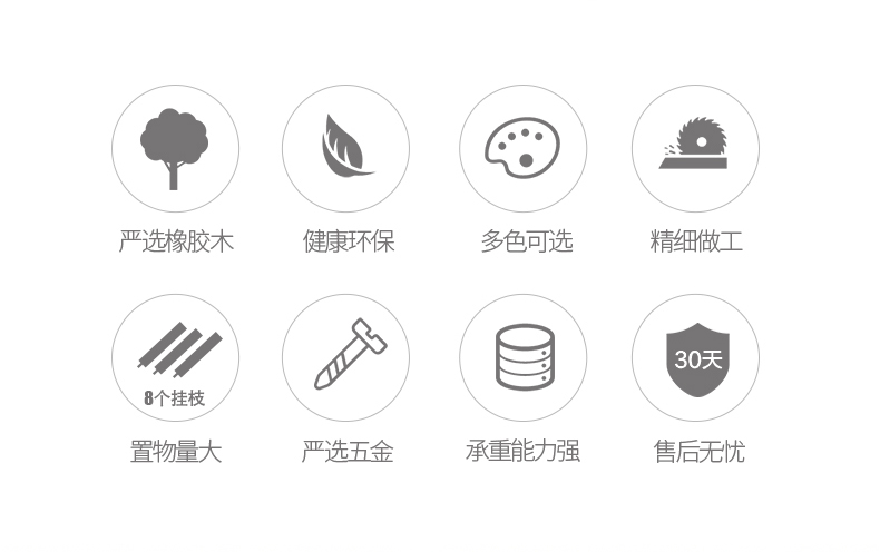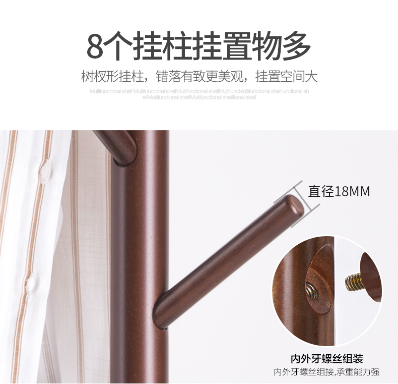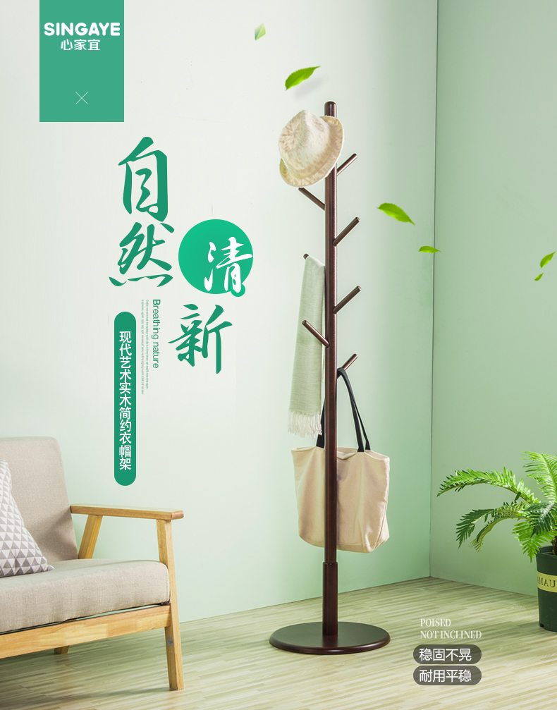 心家宜实木衣帽架,选用马来西亚进口橡胶木,切面光滑,纹理清晰,带着天然实木的淡淡清香,进口优质烤漆,质感光滑,无毒无害0甲醛,放客厅挂衣服方便又美观。