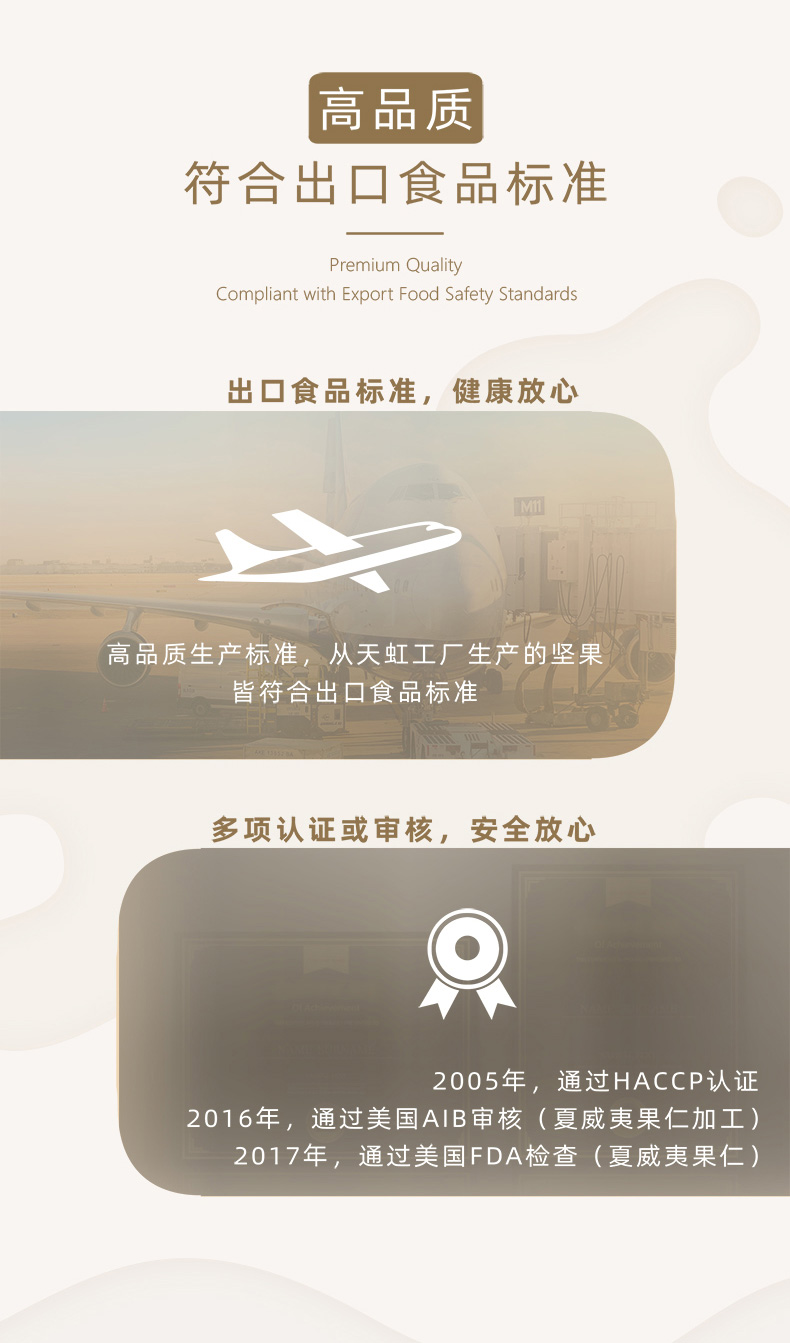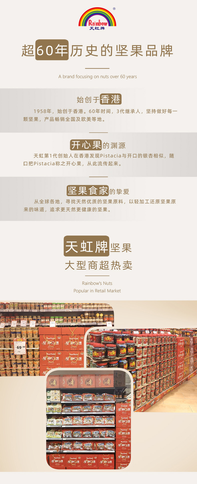 天猫天虹牌食品旗舰店89.9元,可领20元优惠券,实付69.9元到手,天虹是佛山南兴果仁制品有限公司旗下品牌,最早可追溯于1958年,南兴果仁是一家中外合资企业,年产10万多吨,是我国珠三角地区非常有名的坚果企业。