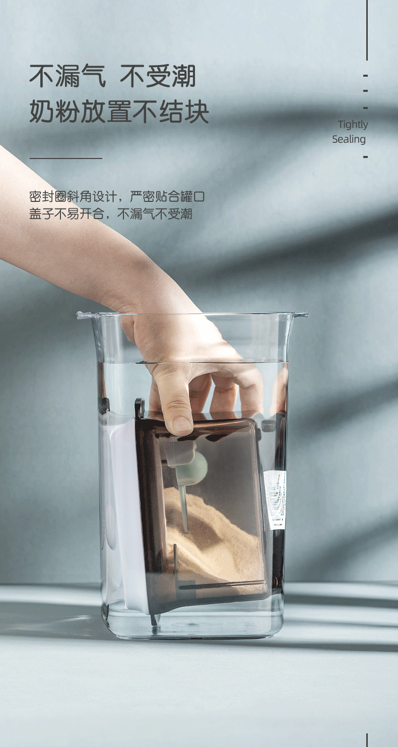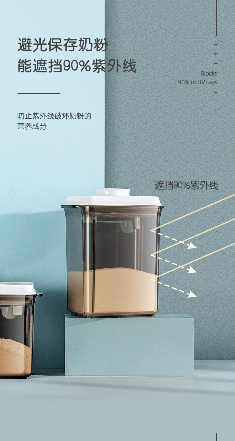 密封圈斜角设计,严密贴合罐口,盖子不易自动开合,不会漏气导致受潮。同时还能遮挡90%的紫外线,防止了紫外线破坏奶粉的营养成分。