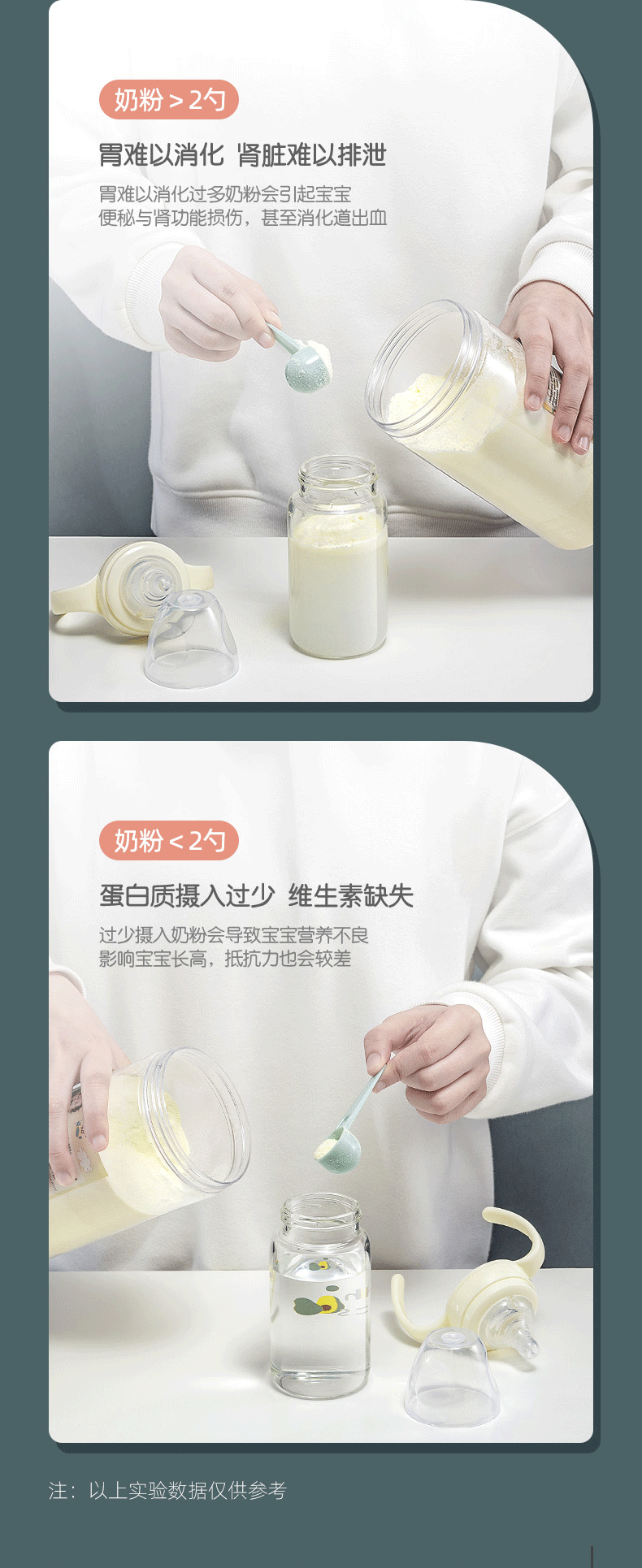 PS:一岁以上宝宝正常摄入量为90ml水+2勺奶粉(一勺5g)