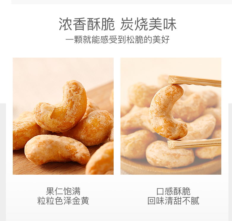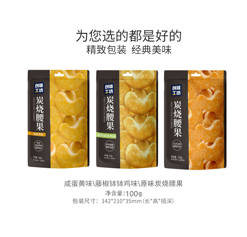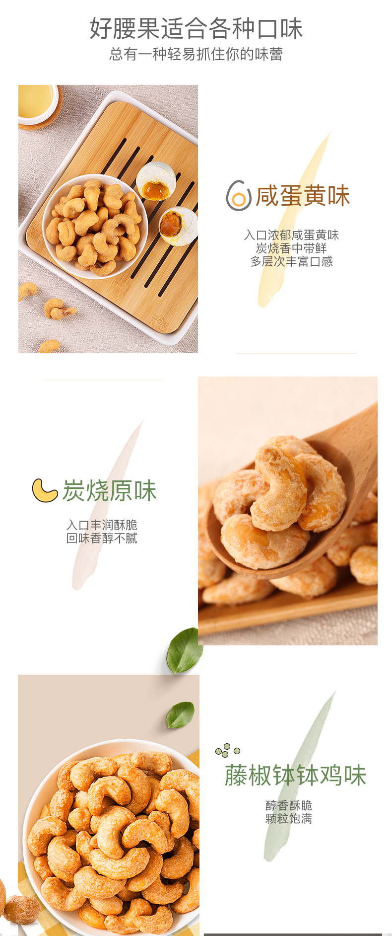 天猫创味工坊旗舰店56.8元,下单立减19.9元,可领5元优惠券,实付31.9元到手,5袋装此价,性价比最高,腰果仁颗粒饱满,色泽金黄,无任何食品添加剂,无壳免剥,香浓酥脆,好吃的停不下来,有原味、咸蛋黄味、藤椒钵钵鸡味 3种口味可选。
