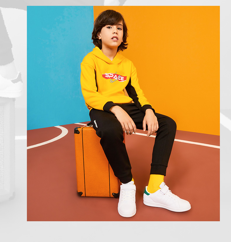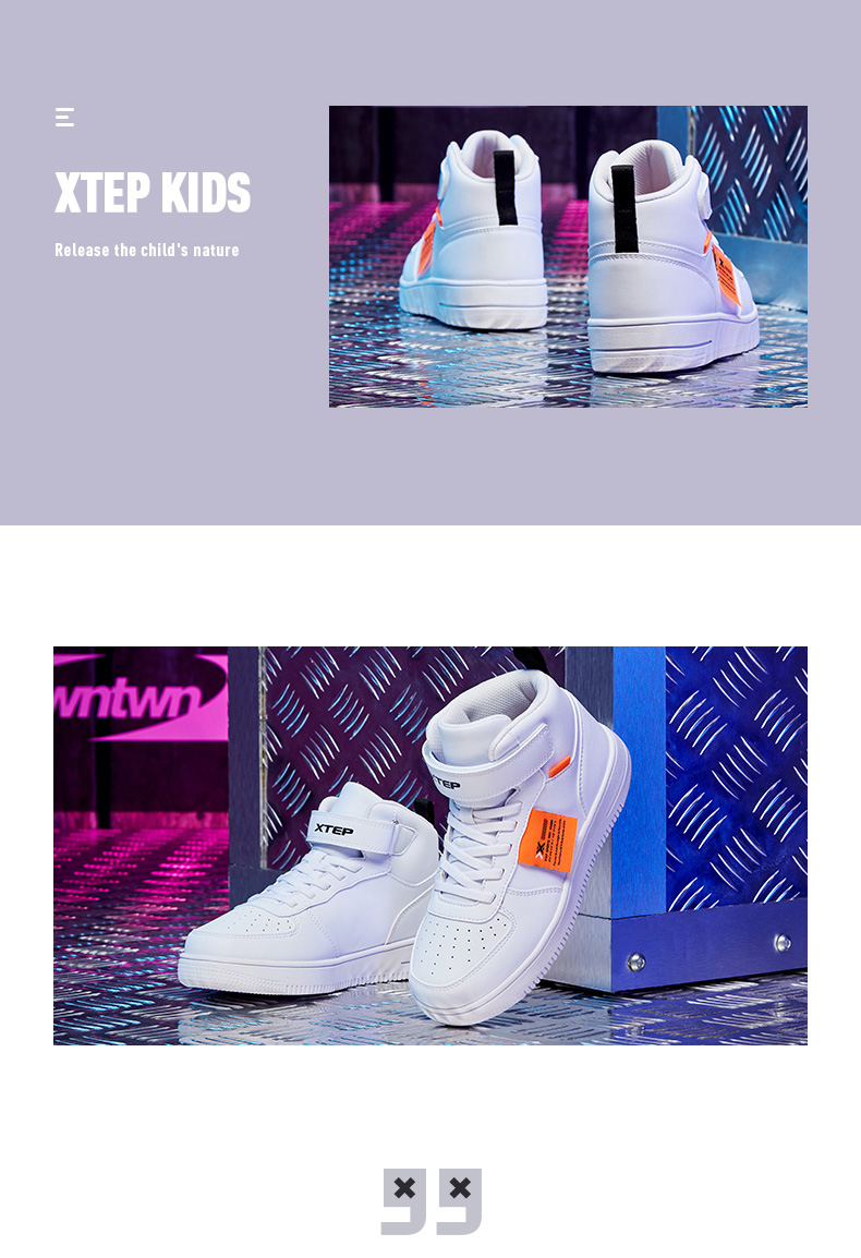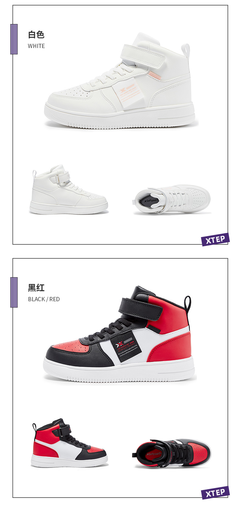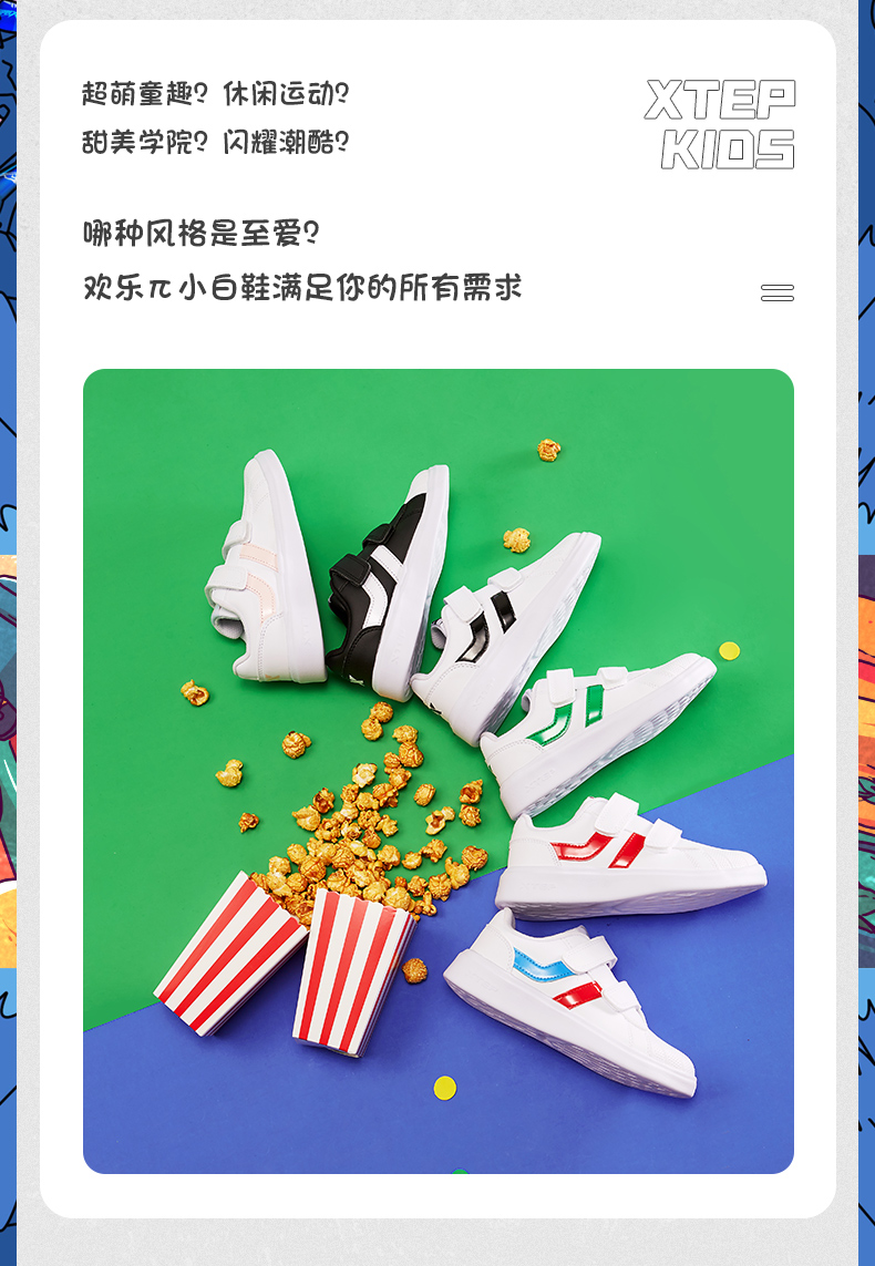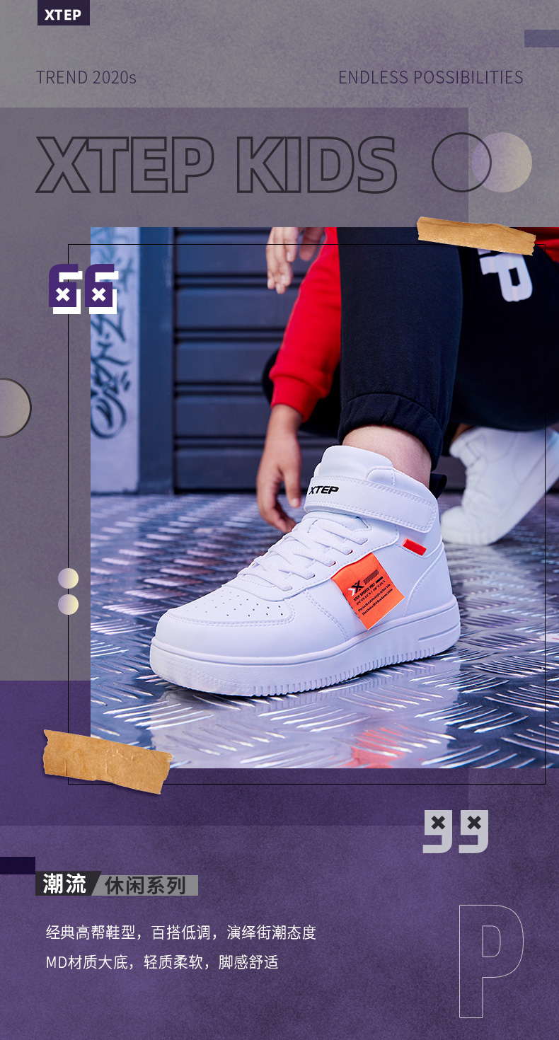 这款特步儿童休闲板鞋是2020年秋季新款,经典小白鞋造型,在款式上类似阿迪的Stan Smith,贝壳头+尾标的组合,很帅气有没有。
