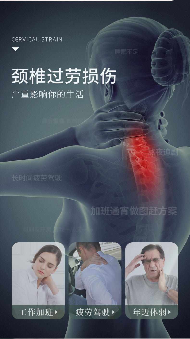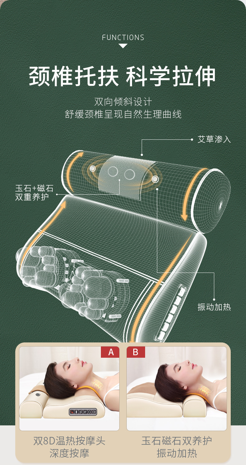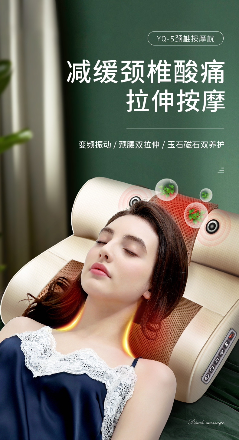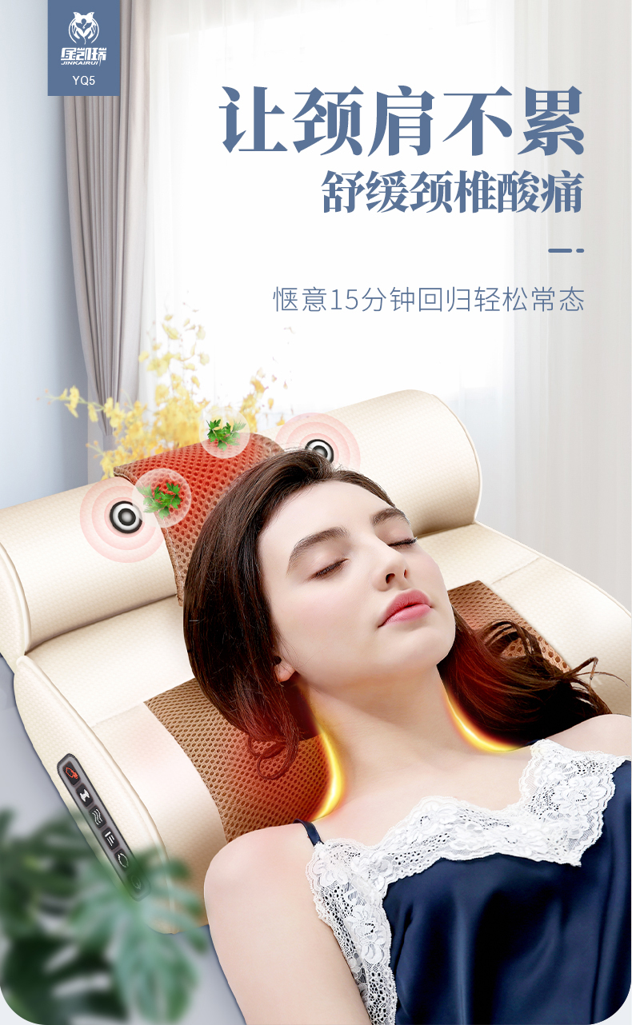 这款按摩枕,特色波浪曲线,贴合人体,按摩更深入。升级20个按摩头,集推、压、挤、揉、捏、滚为一体,自动正反转,多模式切换,智能6键调控,15分钟智能定时防止按摩过度;一款可满足全家所需。