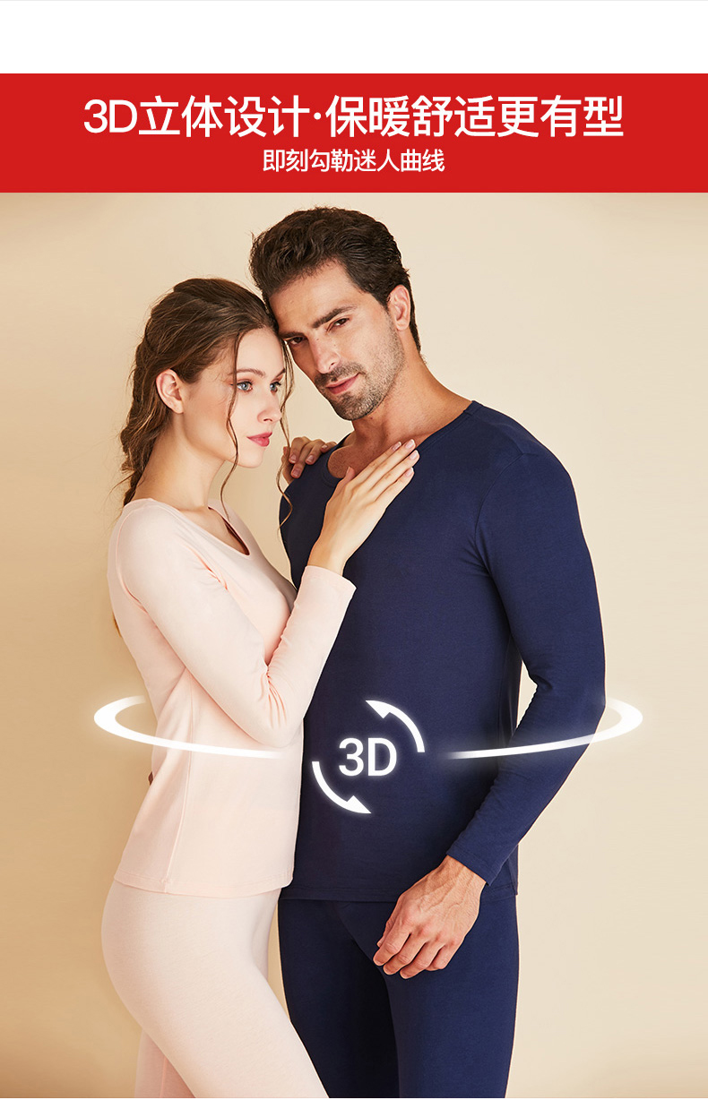 这款猫人男女秋衣秋裤套装,使用阳离子发热纤维面料,由91%新型聚酯纤维(阳离子)+9%弹性纤维组成,结构是面层吸湿发热、里层磨绒蓄热,能37度恒温,可以穿的又轻又薄又保暖。