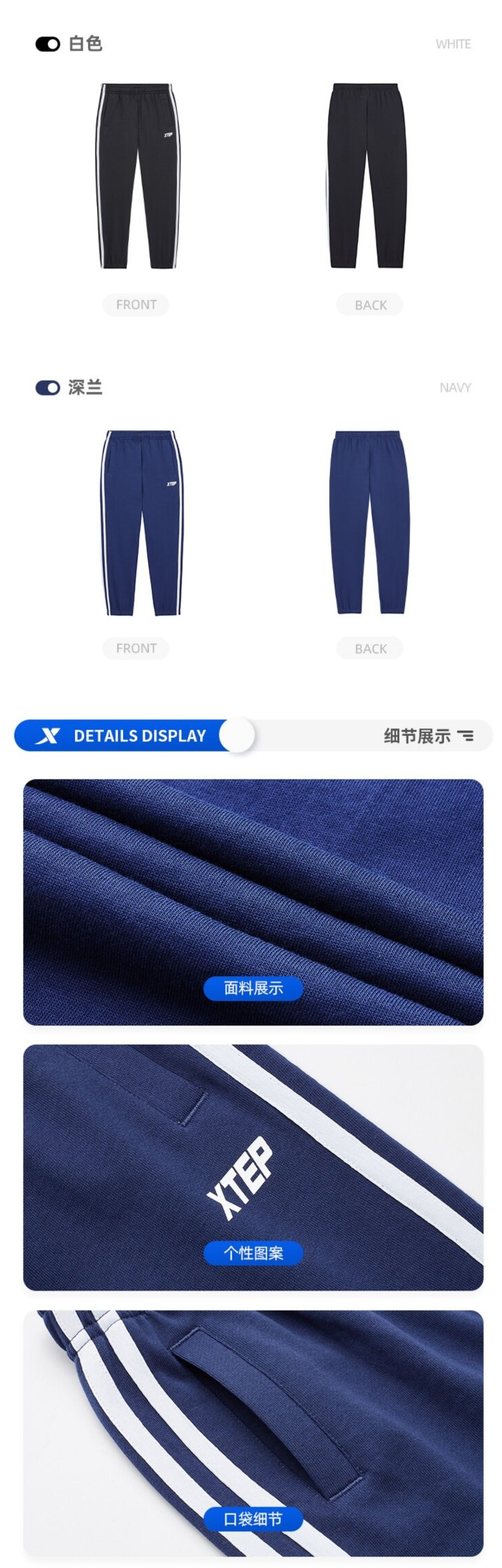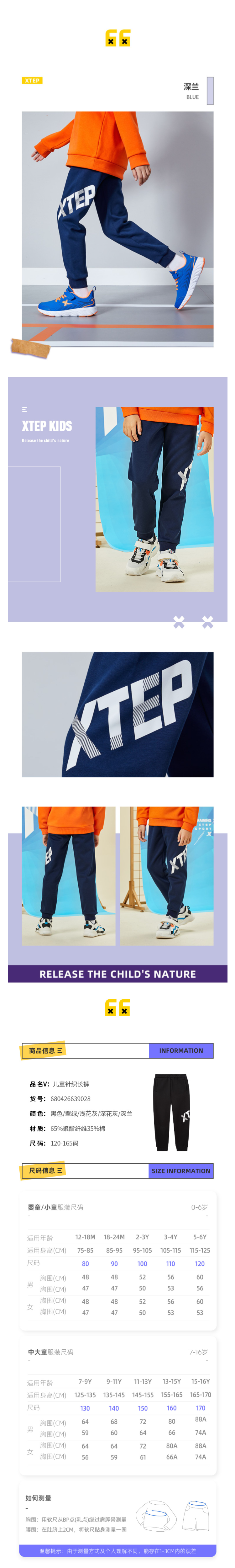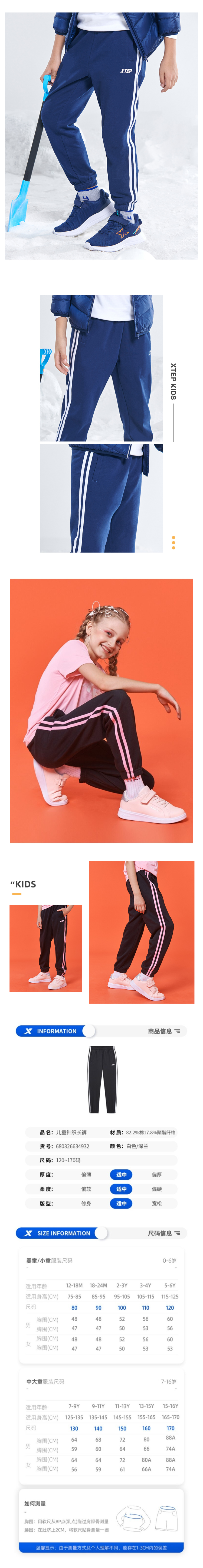 这款特步儿童加绒运动裤,是2020年秋冬新款,采用65%聚酯纤维+35%棉混纺而成,厚度中等,内里拥有接近纯棉的轻柔手感和舒适度,面料质地轻盈,透气舒适。弹力裤腰、罗纹裤脚,裤面上还有XTEP的印花。