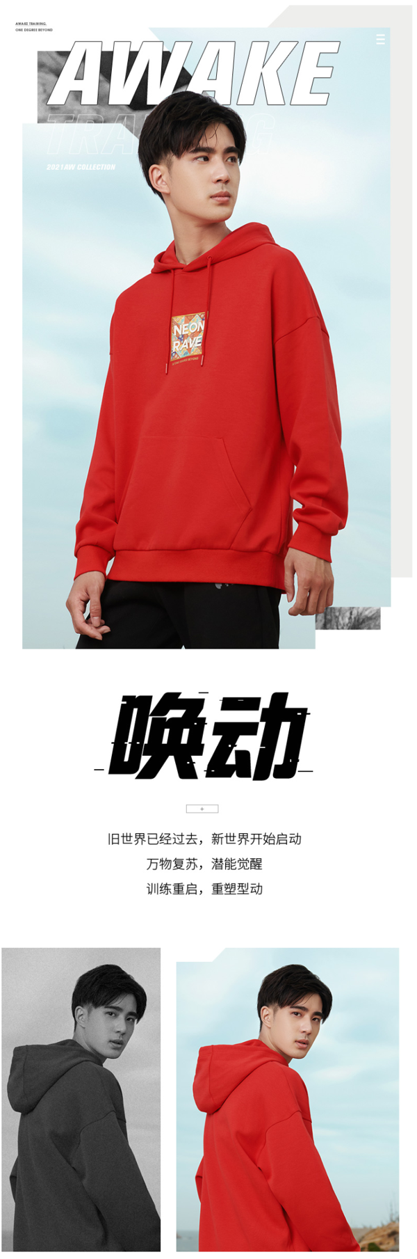 这款361度男连帽运动卫衣,是2020年的冬季款,采用棉涤混纺针织面料,中等厚度、内里不加绒,面料挺括舒适,保暖锁温,适合春秋冬季穿。