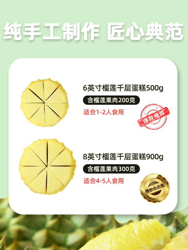 天猫皇家美孚旗舰店118元,下单立减40元,可领20元优惠券,实付58元到手,采用马来西亚A级苏丹王榴莲,精选动植物奶油,精选黄油鸡蛋秘制千层皮,三层纯榴莲果肉不低于200g,不添加任何防腐剂,真正零添加,现做现发!顺丰冷链次日达。