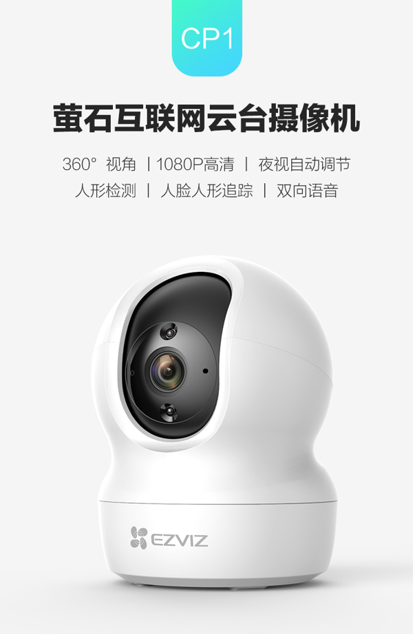 萤石 CP1云台网络摄像机配备了一颗200W像素的高清摄像头,支持1080p摄像。采用双向云台设计,镜头可上下左右旋转,垂直向上可视角度67.5°,垂直向下可视角度32.5°,能实现360°看护。高功率双LED红外灯,支持白天黑夜自动切换,自动调节亮度,支持10m夜视距离。支持人性人脸,追踪检测。