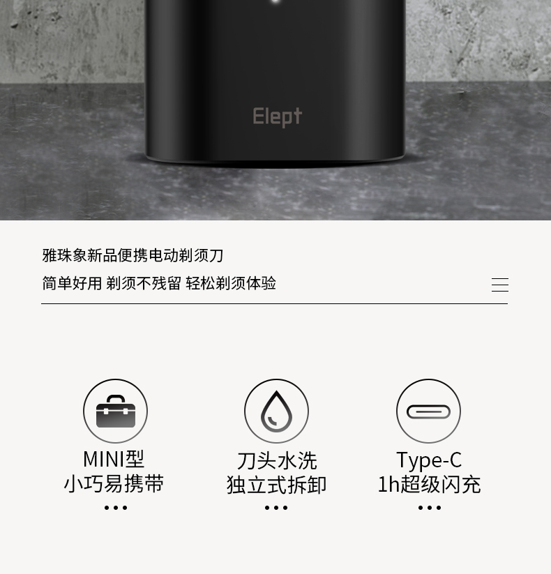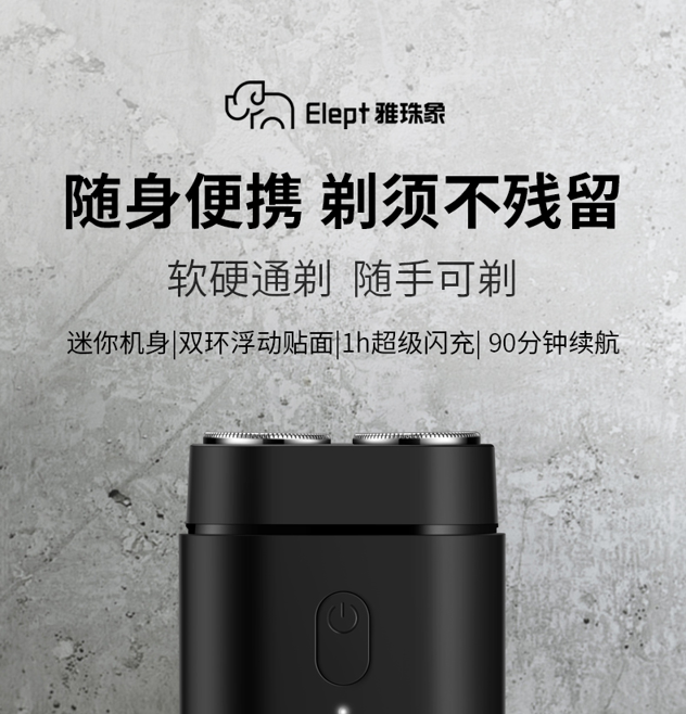 天猫雅珠象旗舰店69.9元,可领55元优惠券,实付14.9元到手,送收纳袋 快充线 清洁刷。,雅珠象 迷你便携智能剃须刀,双环浮动贴面,进须量更大,剃须不残留不卡须,刀头可水洗,1小时快充,90分钟超长续航,超强静音效果,迷你机身,可随身携带,适合出差旅行应急使用。