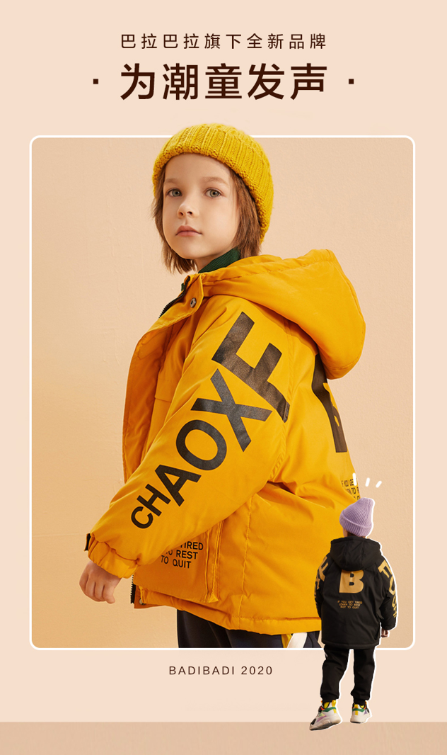 宽松合体版型,基本不挑身材;双重门禁设计,搭配松紧袖口不易灌风,保暖效果更好。时尚连帽印花款式设计,适合小朋友穿着。