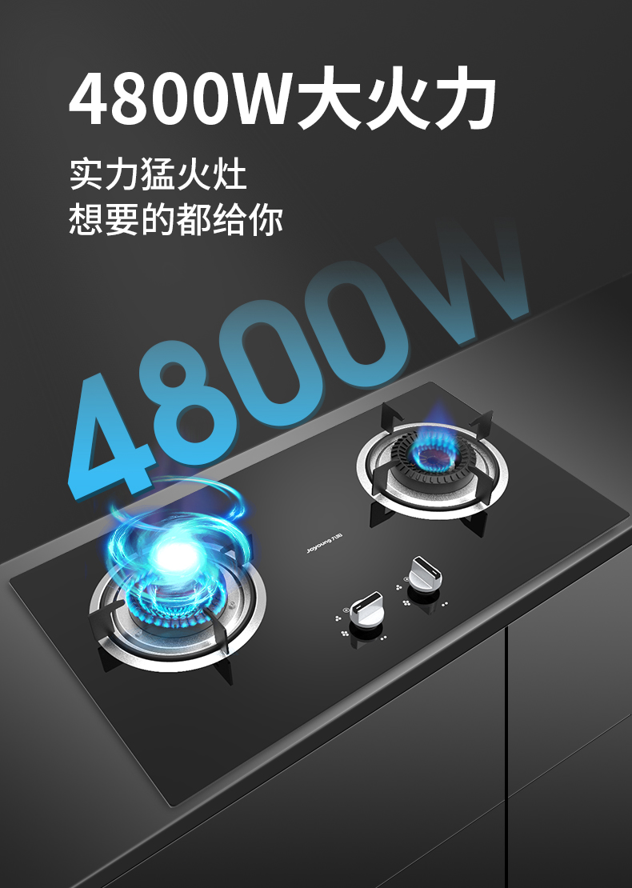 九阳全新升级4800W大火力燃气灶,火力任意调节,720度球形加热技术,均匀受热,不挑锅形,不糊锅底,1级能效标准,台嵌两用,具有熄火保护装置,拒绝燃气泄漏,3重防爆面板加上童锁按钮,多重防护,安全放心~