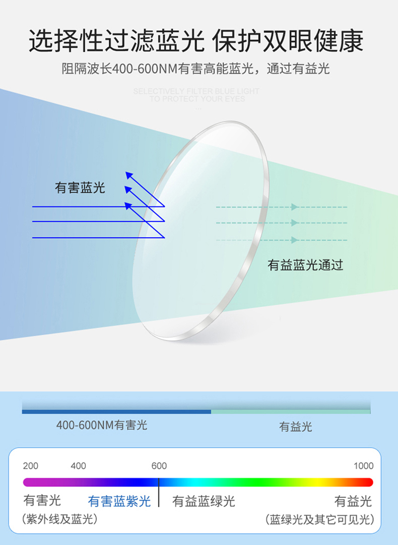 这款防蓝光眼镜,采用的是进口全透明PC镜片,美国HEV-Absorb技术,能够直接吸收高能蓝光,蓝光阻隔率约45%(透明镜面),并且99.9%防紫外线,防辐射,得益于HEV-Absorb技术可以采用全透明镜片,不添加任何色素,保持超高90%透光率的同时,镜片更少反光,不影响阅读,几乎没有色差。