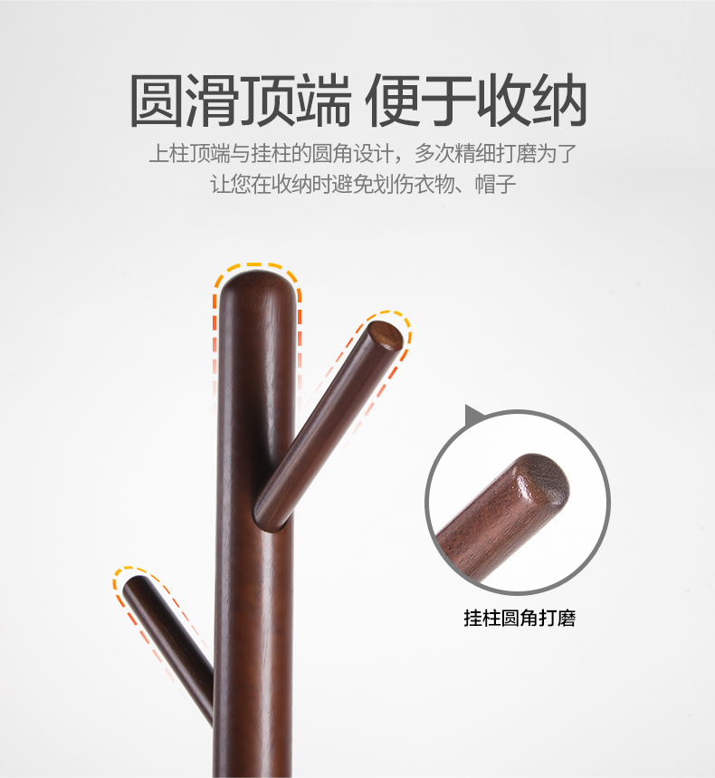 心家宜实木衣帽架,选用马来西亚进口橡胶木,切面光滑,纹理清晰,带着天然实木的淡淡清香,进口优质烤漆,质感光滑,无毒无害0甲醛,放客厅挂衣服方便又美观。