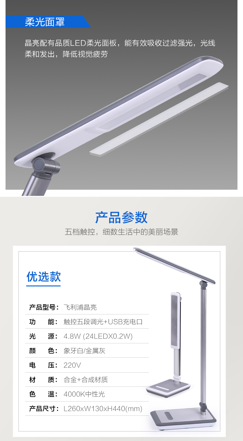 天猫飞利浦照明官方旗舰店309元,下单立减50元,可领160元优惠券,实付99元到手。这款Philips飞利浦晶亮五段调光LED台灯,使用优质LED光源,功率为4.8W,高精密模具注塑,光学分光器一体成型,内置反光罩能提高照明效,让光照更加均匀同时高度还原色彩。采用了触控式调光,拥有5档亮度可选,能够满足不同情况下的光照需求。转轴设计,能够延伸照明范围并且方便日后的收纳,同时带有USB接口,能够为移动设备充电。
