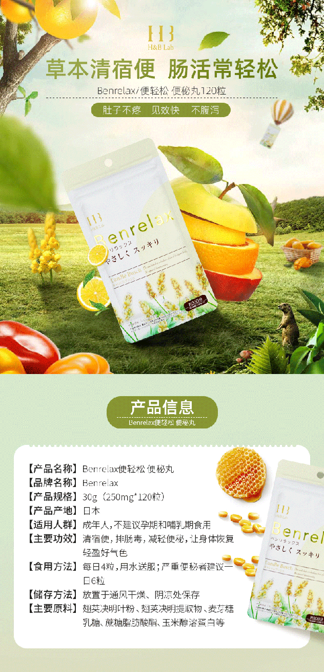 天猫33号农场海外专营店89元,可领30元优惠券,实付59元到手。Benrelax是日本品牌「官网地址」,在首页即可看到这款产品。我借助翻译将页面的日文大致看了一遍,这款便秘丸的主要成分是对叶豆,又名翅荚决明,是一味中药,常做缓泻剂(能促进排便反射或使排便顺利的药物)使用。
