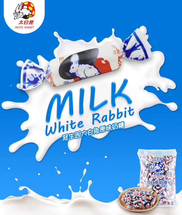 大白兔奶糖是位于中国大陆上海的冠生园出品的奶类糖果,1959年开始发售以来深受各地人民欢迎。不管是60后、70后、80后还是90后,大白兔都是我们儿时美好的回忆~