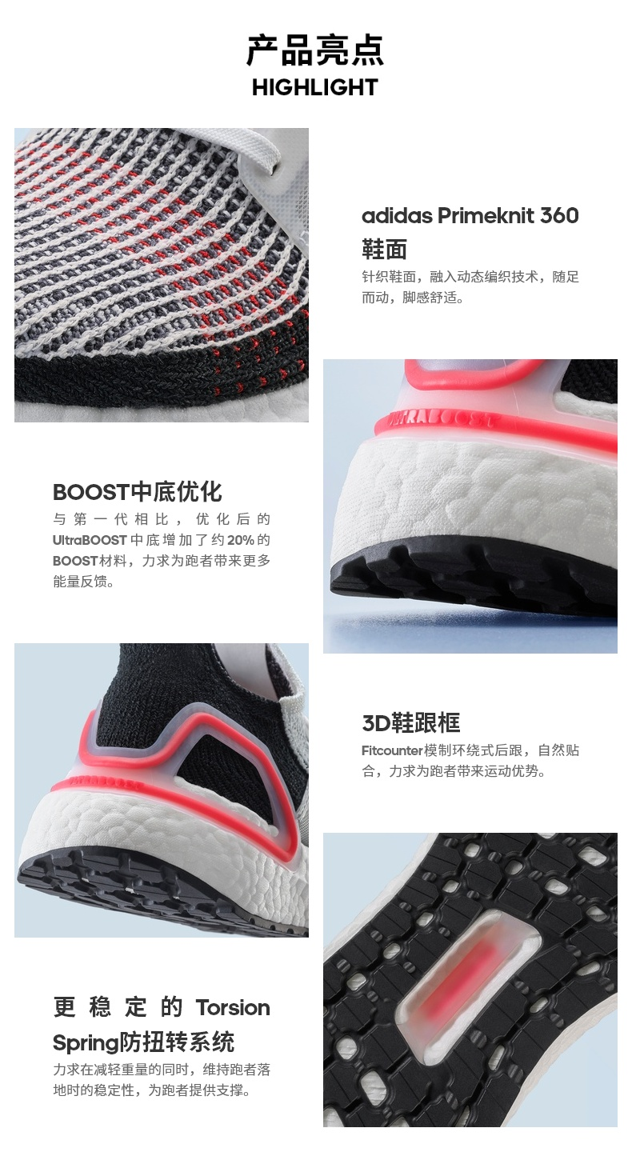 这是阿迪19年的旗舰款跑鞋,一直到今年2月,活动价格一直没下过550元,而UltraBOOST 20创新无力,鞋面多了回收材料制作,后跟增加了反光,全是比较基础的改变,现在入19是性价比最高的选择。