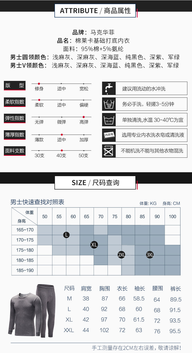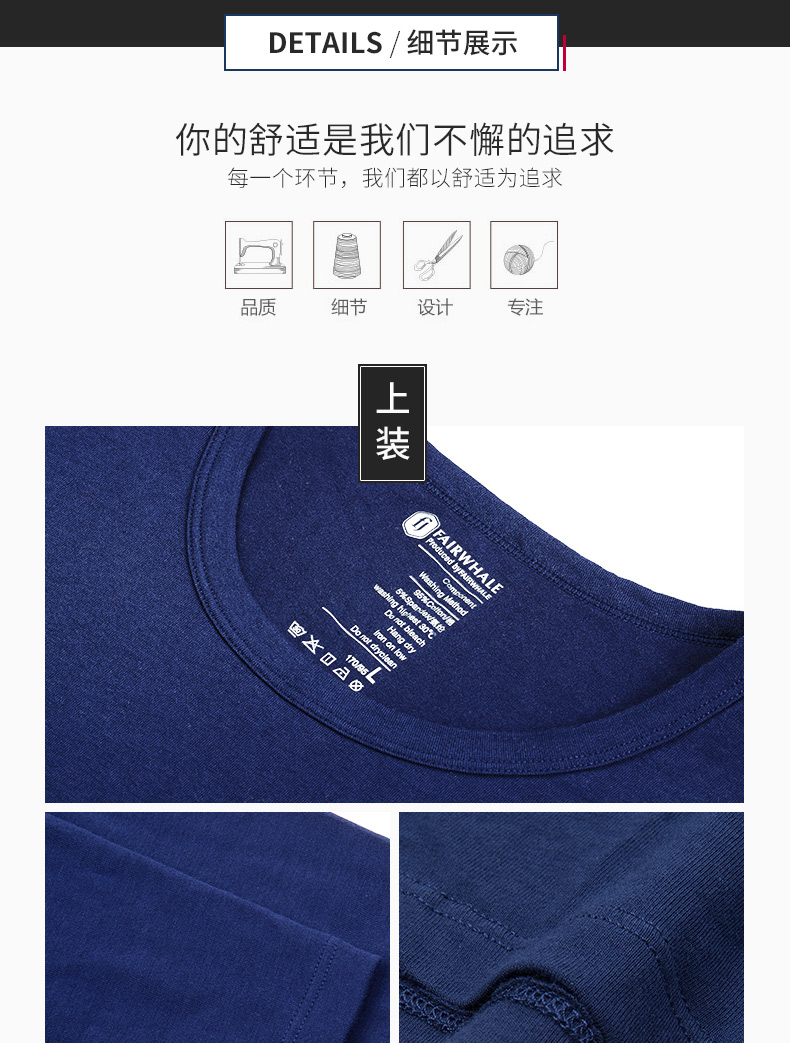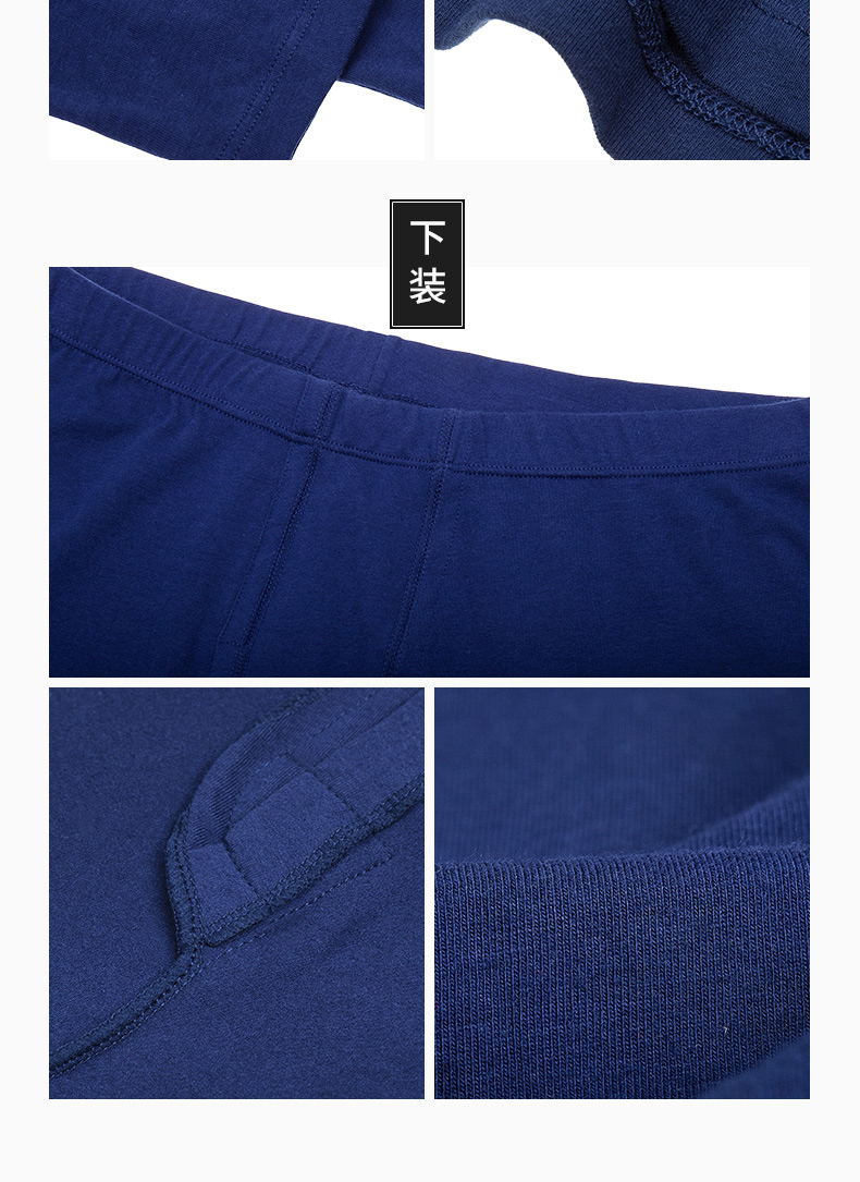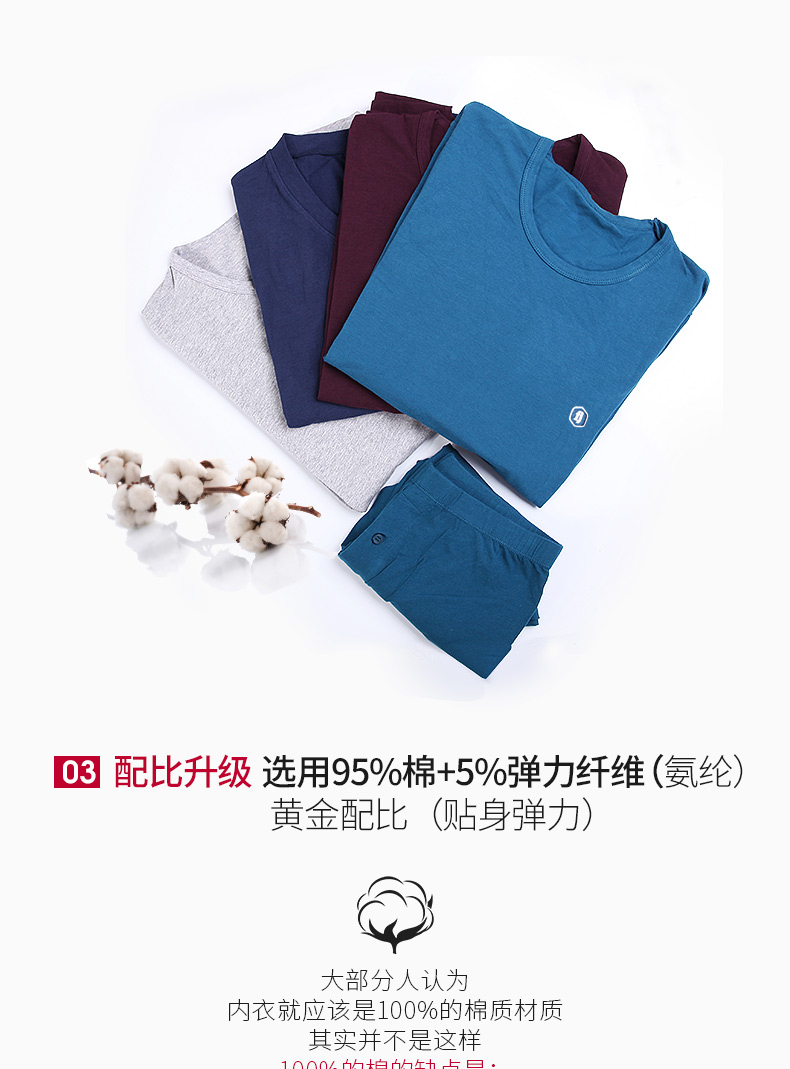 还混了5%氨纶弹性纤维,具有弹性,上身无紧绷和束缚感,灵活不压身,舒适度更高,价格上也比普通棉贵;拼纱高性能吸湿排汗腰带,触感好,无刺激,不勒;收束袖口和裤脚,不拖沓,保暖不漏风。
