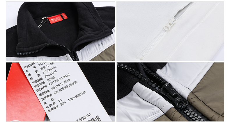 在款式和细节上,腰部微收的合身版型,面料的接缝处是用四针六线处理的,平坦无缝不磨皮肤;下摆收口设计,防止冷风倒灌,主门襟拉链是靠谱日本YKK的,带左右插袋。前胸拼色设计,时尚简约。