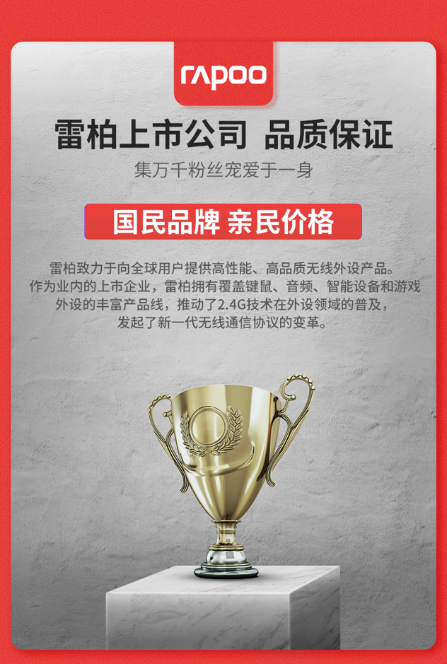 天猫雷柏数码专营店109元,可领70元优惠券,实付39元到手,持平历史低价。雷柏创立于2002年,是国内数一数二的外设厂商,11年新三板上市,目前专注于电子设备、电脑软件的开发和销售。