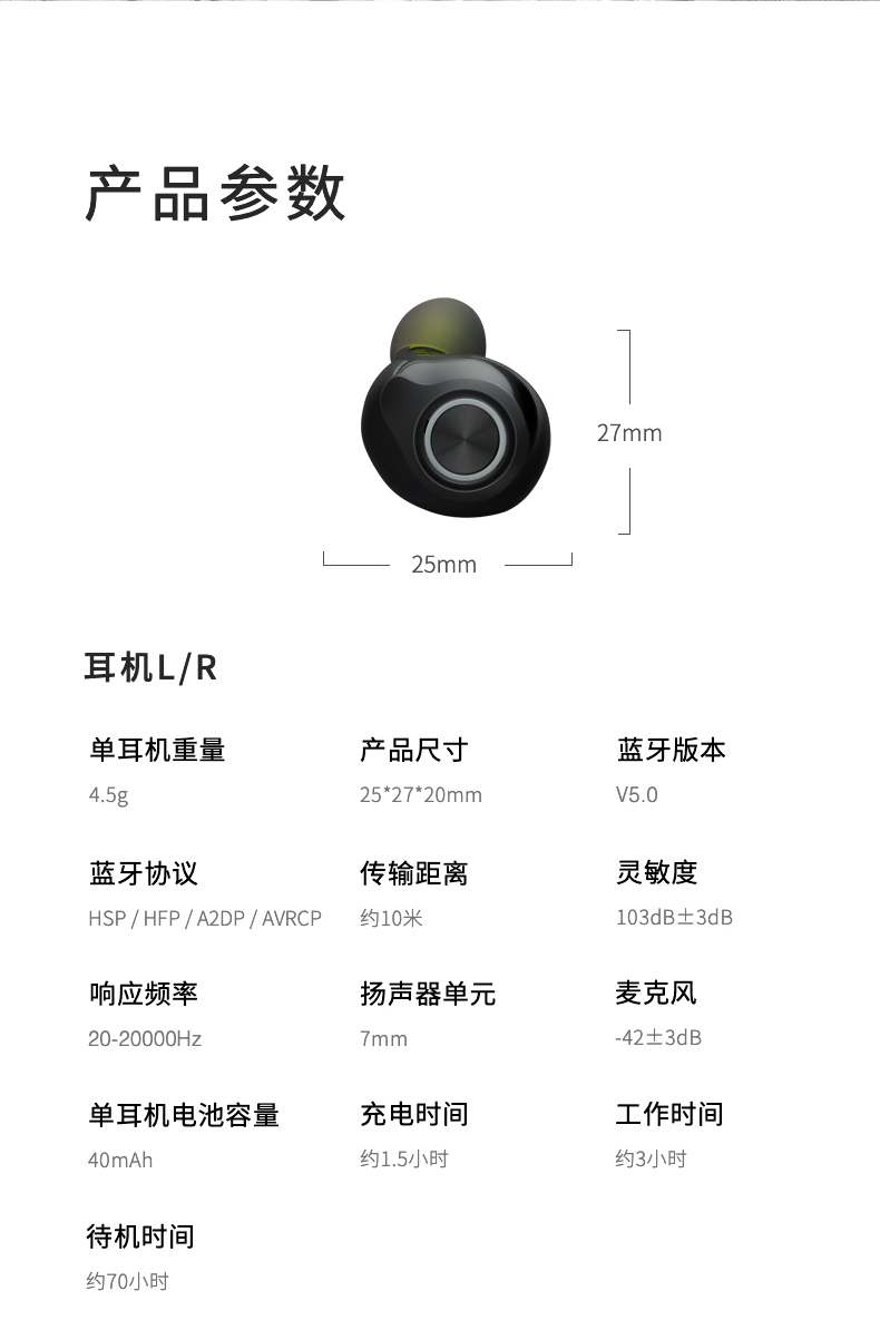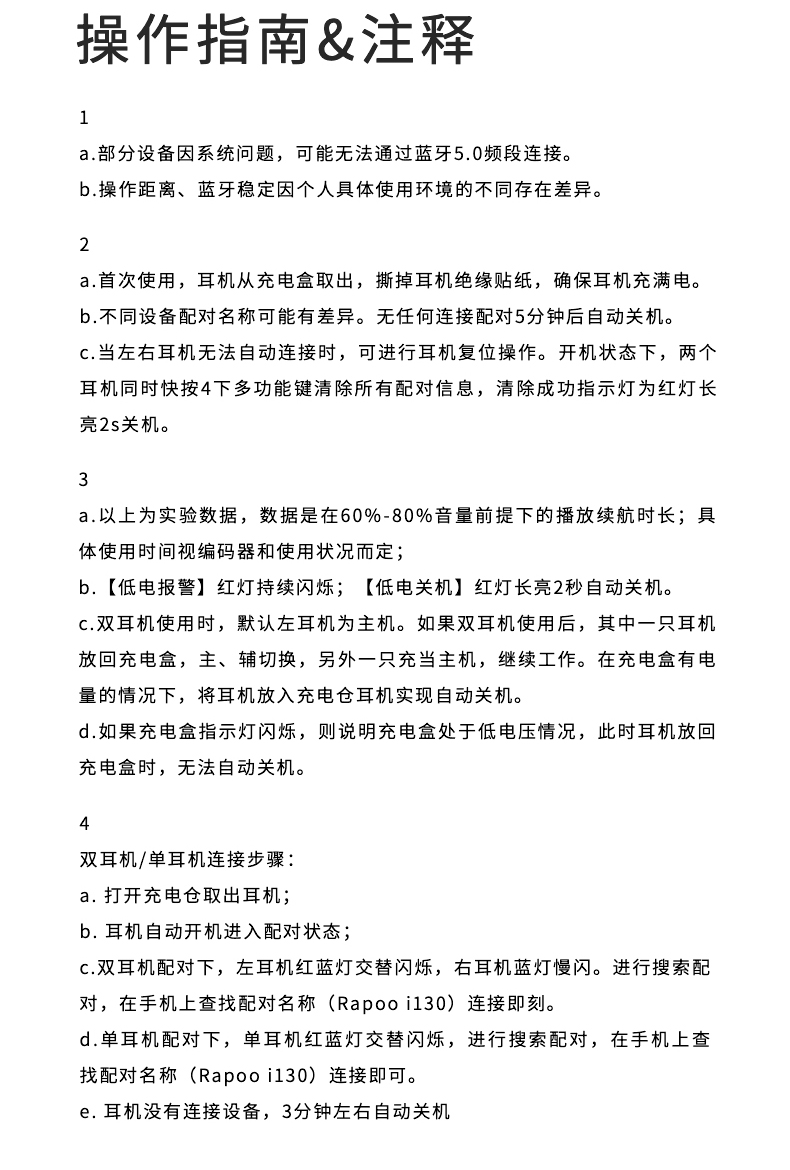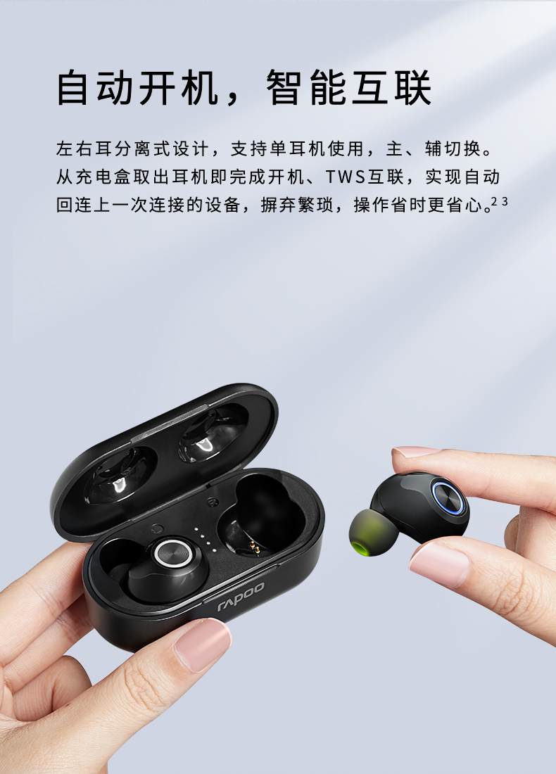 这款i30是雷柏的一款TWS真无线蓝牙耳机,蓝牙5.0芯片,连接稳定,能够提供更长的待机时间和工作距离,内置7mm高性能钕磁扬声器,音质细腻,搭配ENC降噪技术,高清语音通话,4.5g超轻设计,双耳续航3.5小时,充电盒可以续充3-4次,使用方便。