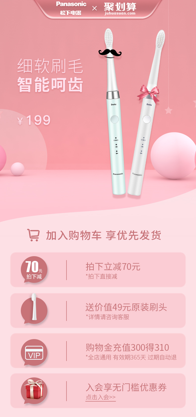 天猫松下个人护理旗舰店269元,下单立减70元,可领20元优惠券,实付179元到手,额外再送一枚原装刷头,共到手2刷头。
