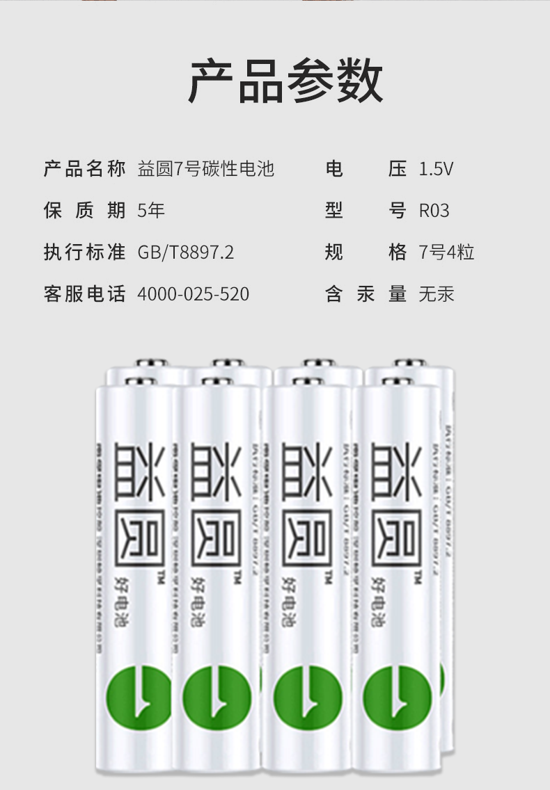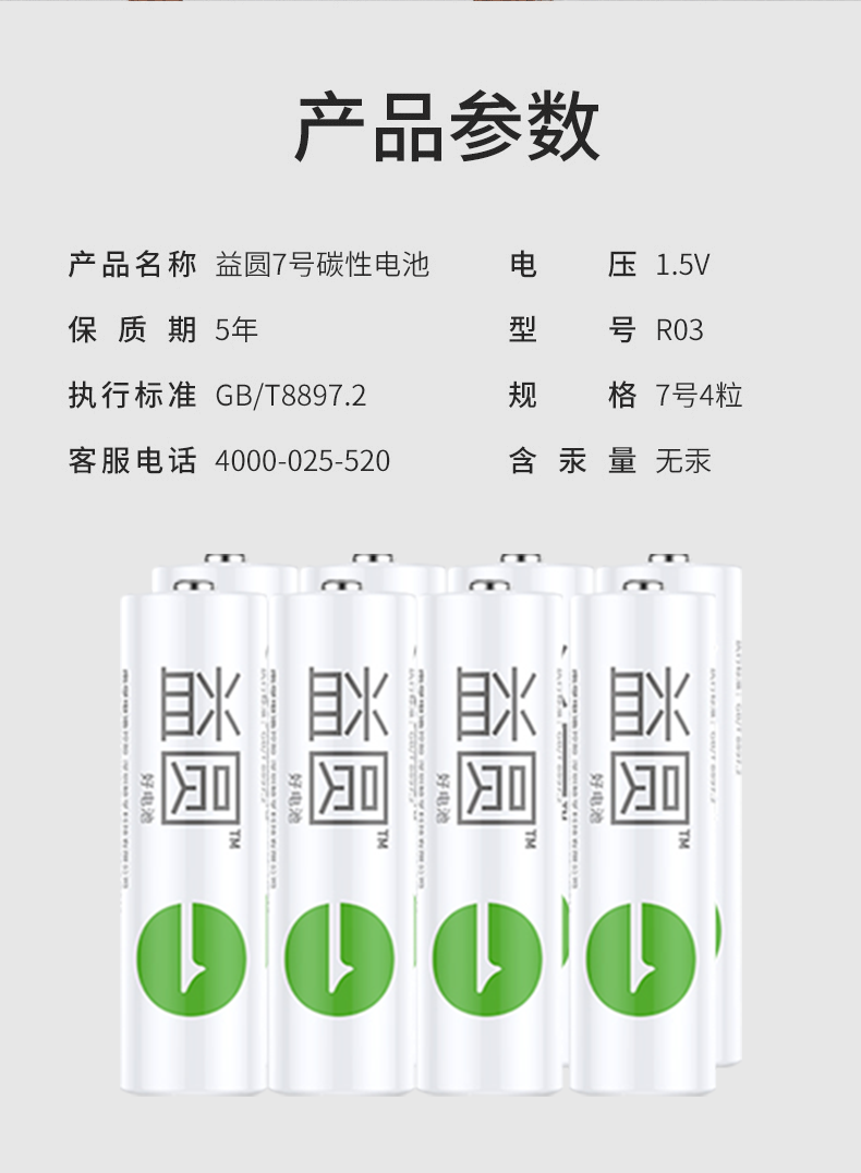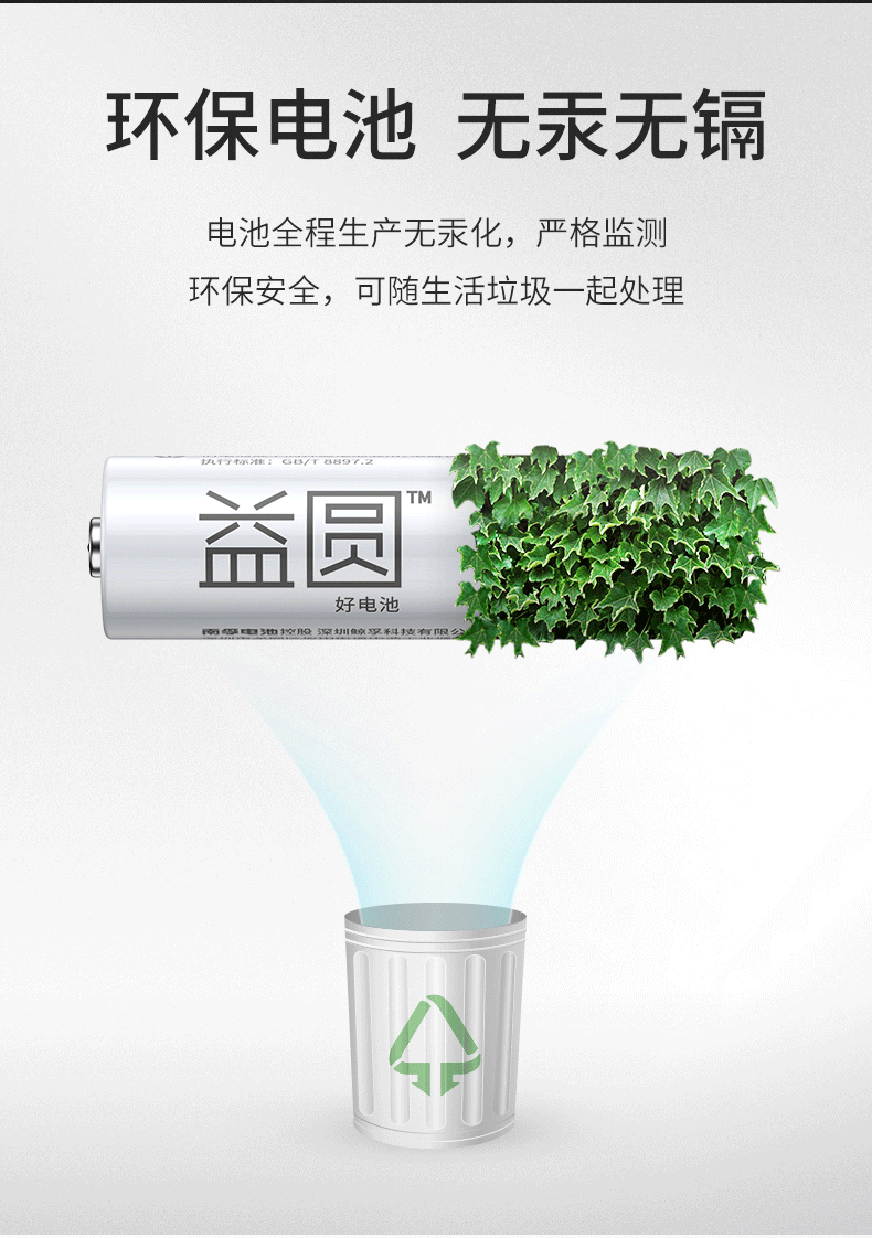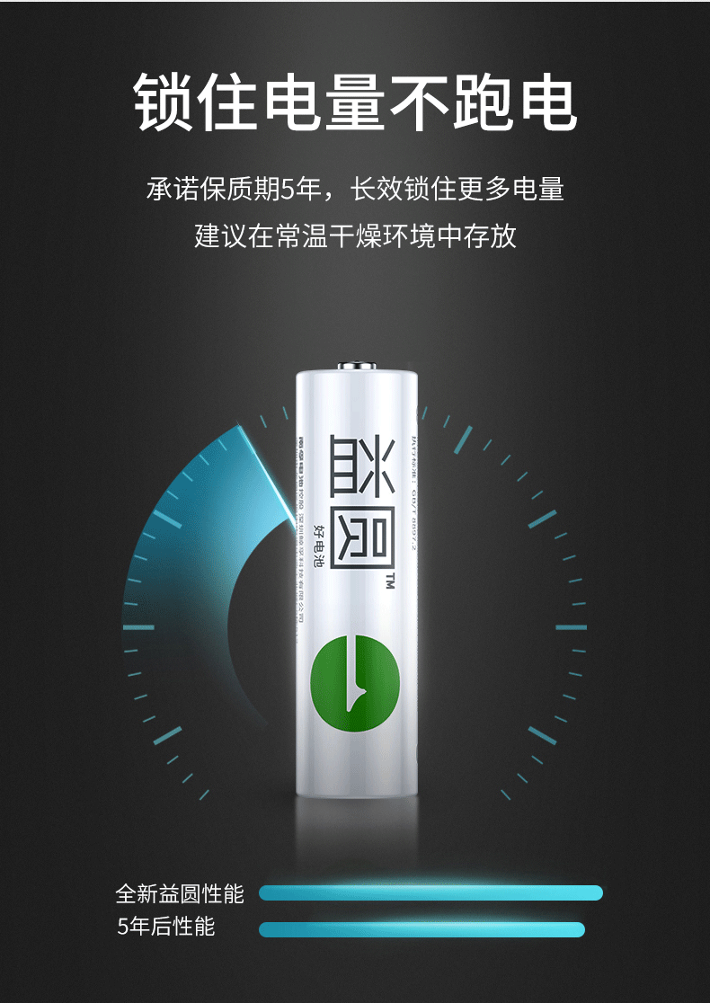这款是南孚新出的碳性电池,采用了新型的密封圈外扣工艺以及创新的大容量铁壳结构,较常规碳性电池填充更多正极活性物质,电量提升了30%,有效期长达5年,不仅在耐存锁电性能上大幅超越市面上有效期平均仅18个月的碳性电池,更给出了正常使用漏液包赔的承诺,而且无汞无镉,对环境危害小。