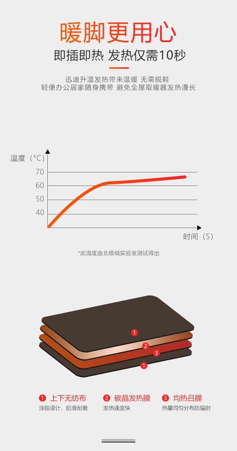 人性化保护4小时自动断电,即插即热,三档温度调节,最高可达65度-45度,和热水浴的感觉差不多了,具备倾倒断电安全防护,可折叠收纳不占地。