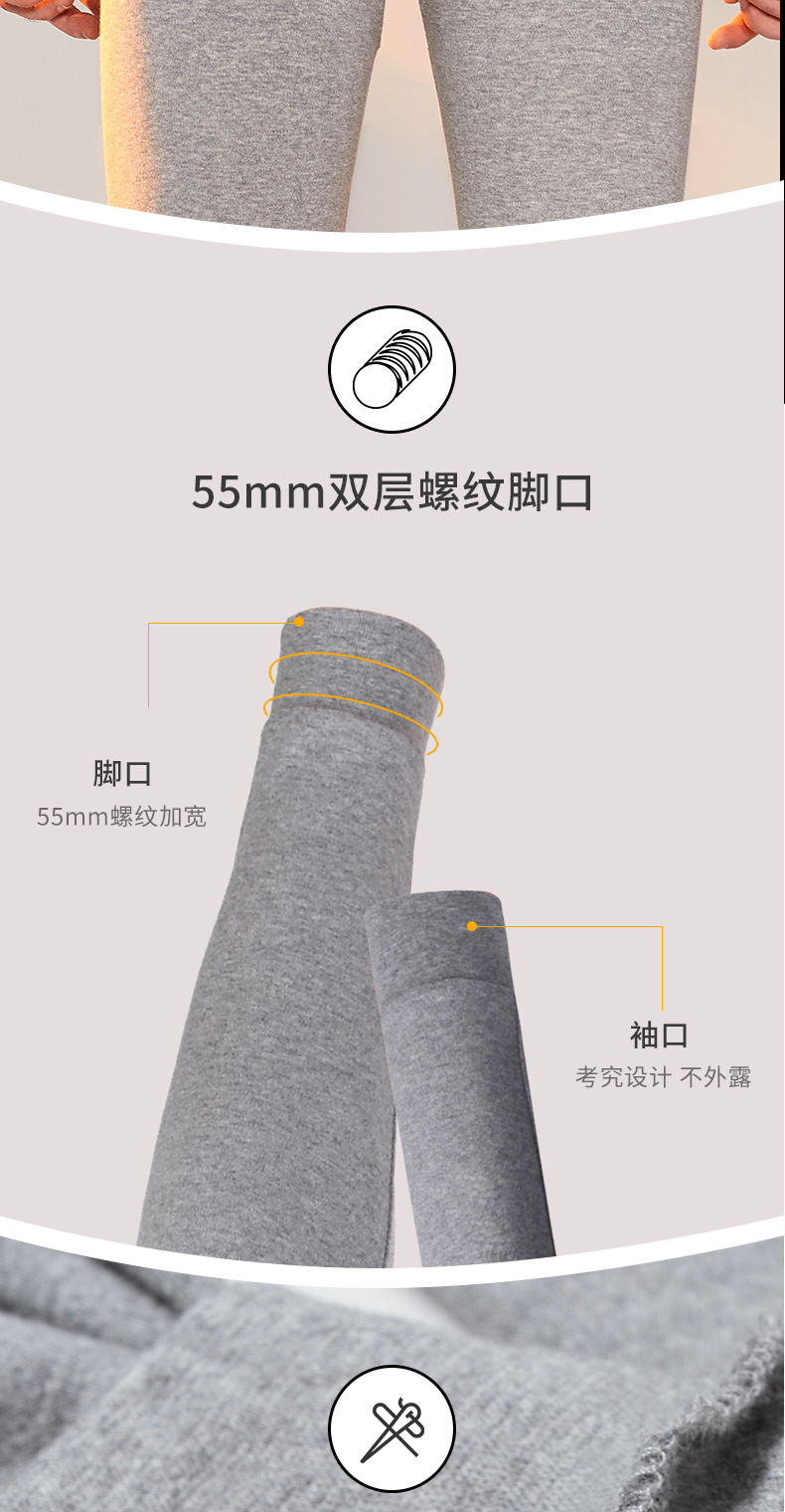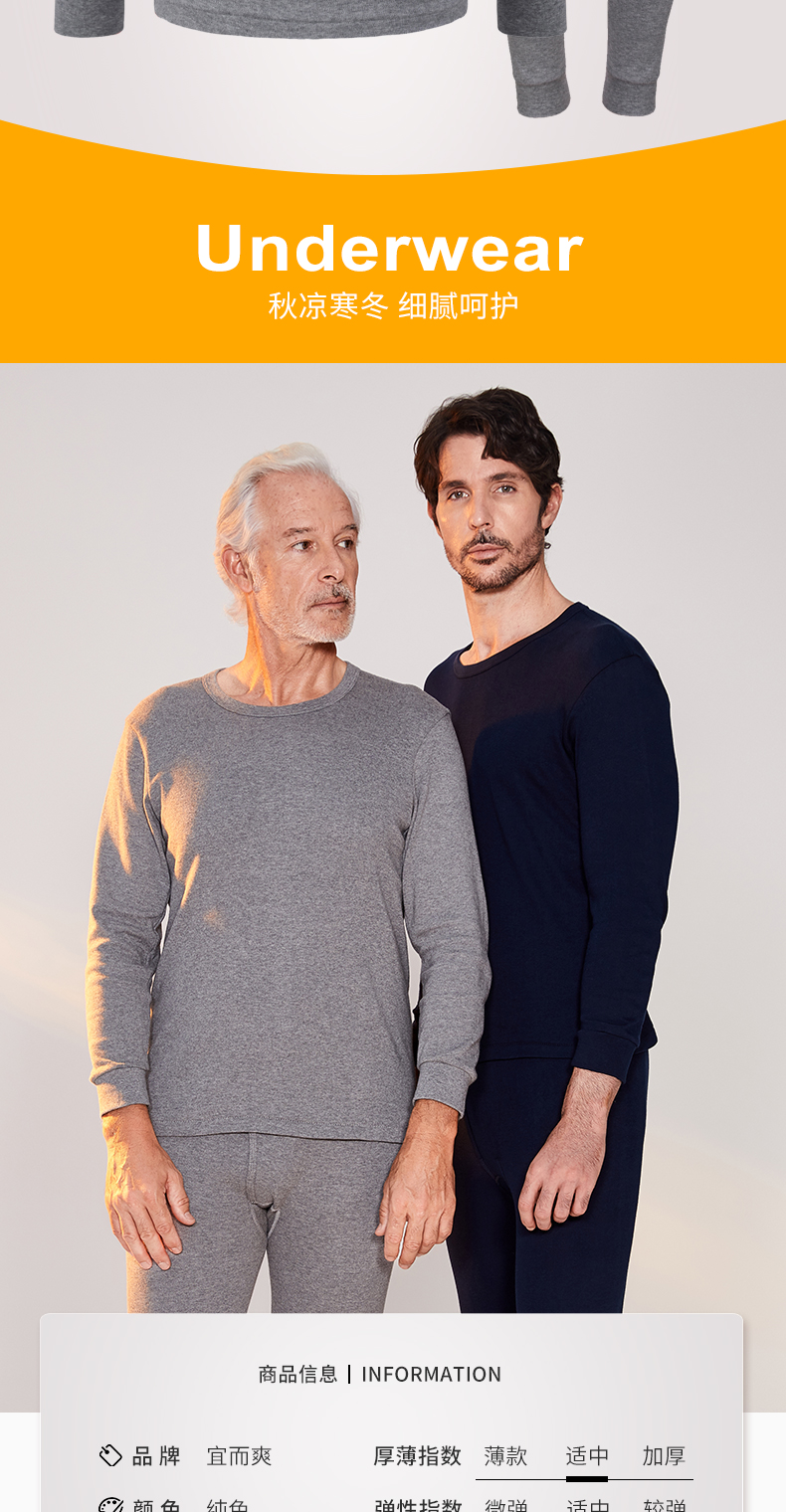 纯棉面料,细腻亲肤,蓄热保暖,贴身透气,修身不臃肿,360°无死角,轻松穿出好身材,风度与温度并存,一套高颜值的保暖内衣,内搭不外露,不易灌风。