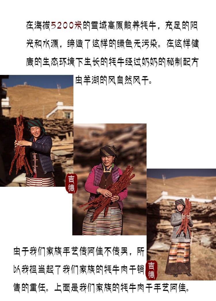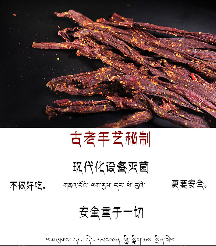 正宗西藏牦牛肉干,藏族吉德家自制牦牛肉干,传统藏式古老手艺秘制,选材全部取自5200米雪域高原上野生散养的牦牛肉,现代化设备灭菌,七天无理由退货!赠运费险。规格:250g*2袋。