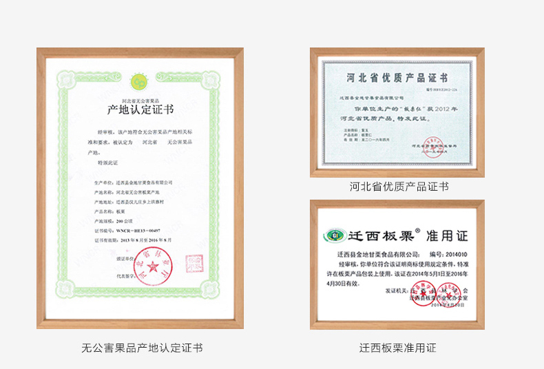 迁西板栗又称京东板栗,产于河北省唐山市迁西县一带,是河北省传统特色农产品,至今有2000多年的栽培历史,在很多古籍上都有记载。迁西板栗外形玲珑,呈红褐色,有浅薄蜡质层,鲜艳而富有光泽;果仁呈米黄色,内皮易剥,肉质细腻,糯性粘软,甘甜芳香,营养丰富。2008年3月,迁西板栗被国家工商总局商标局认定为中国驰名商标。